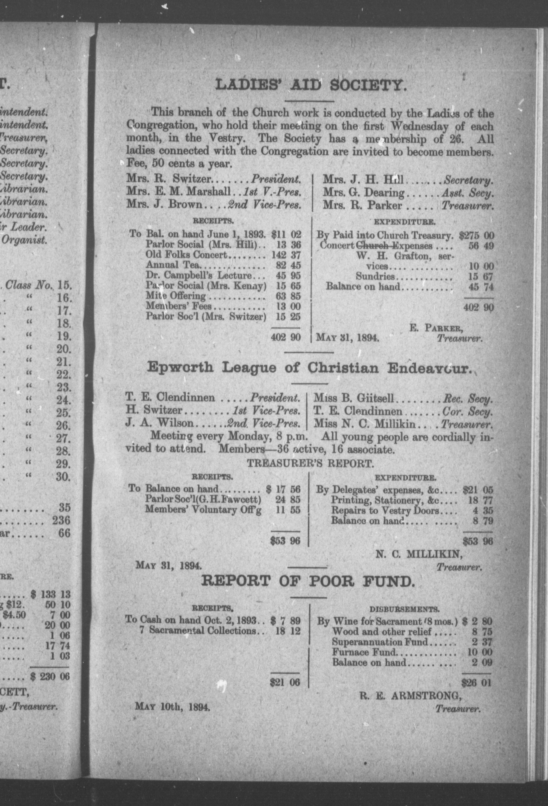 - Annual report of McLeod Street Methodist Church, Ottawa, for year ended May 31st, 1894 : 1893/1894