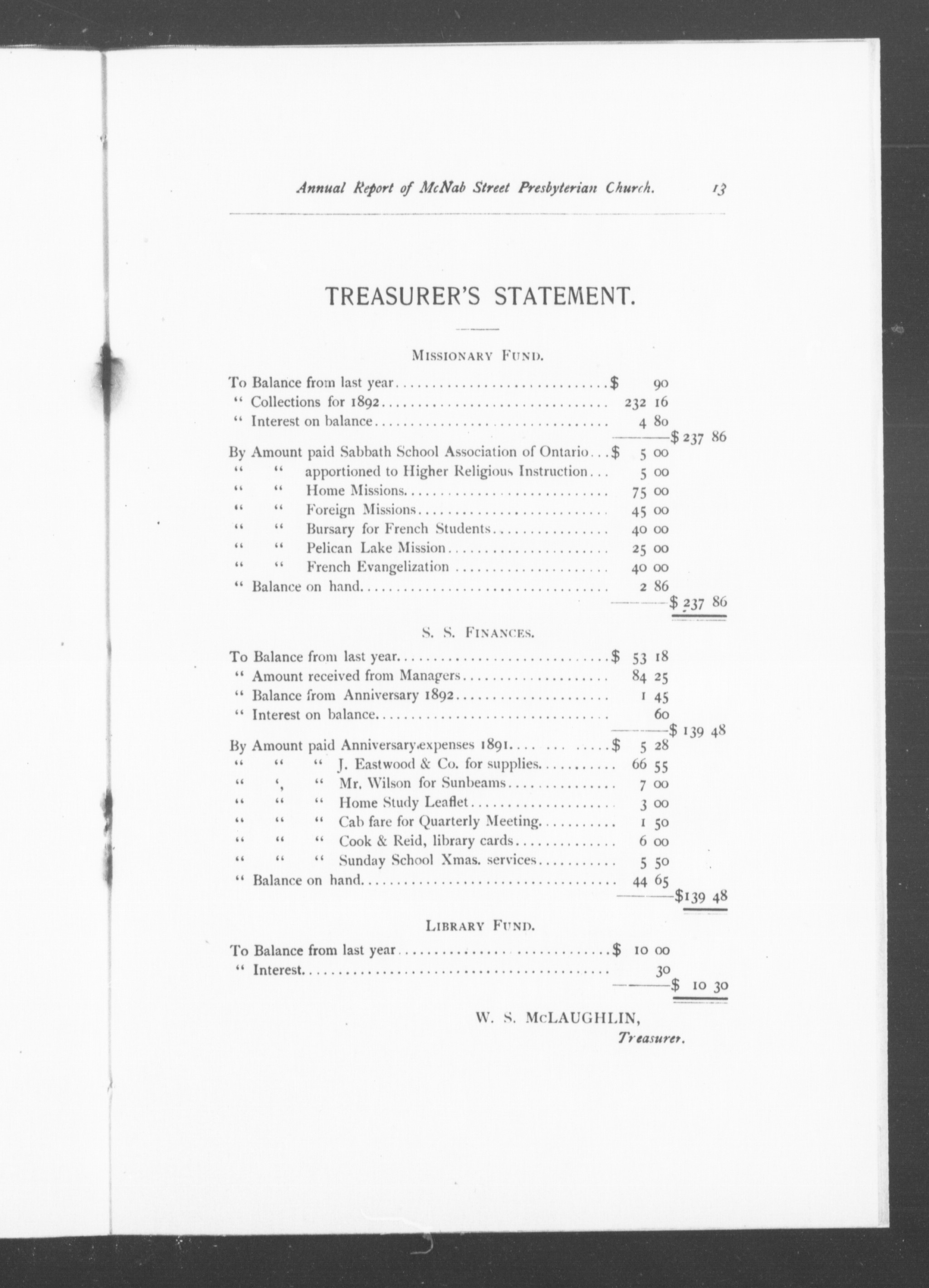 - 38th annual report of the McNab Street Presbyterian Church of Hamilton, Ontario, for the year 1892 : 38th (1892)