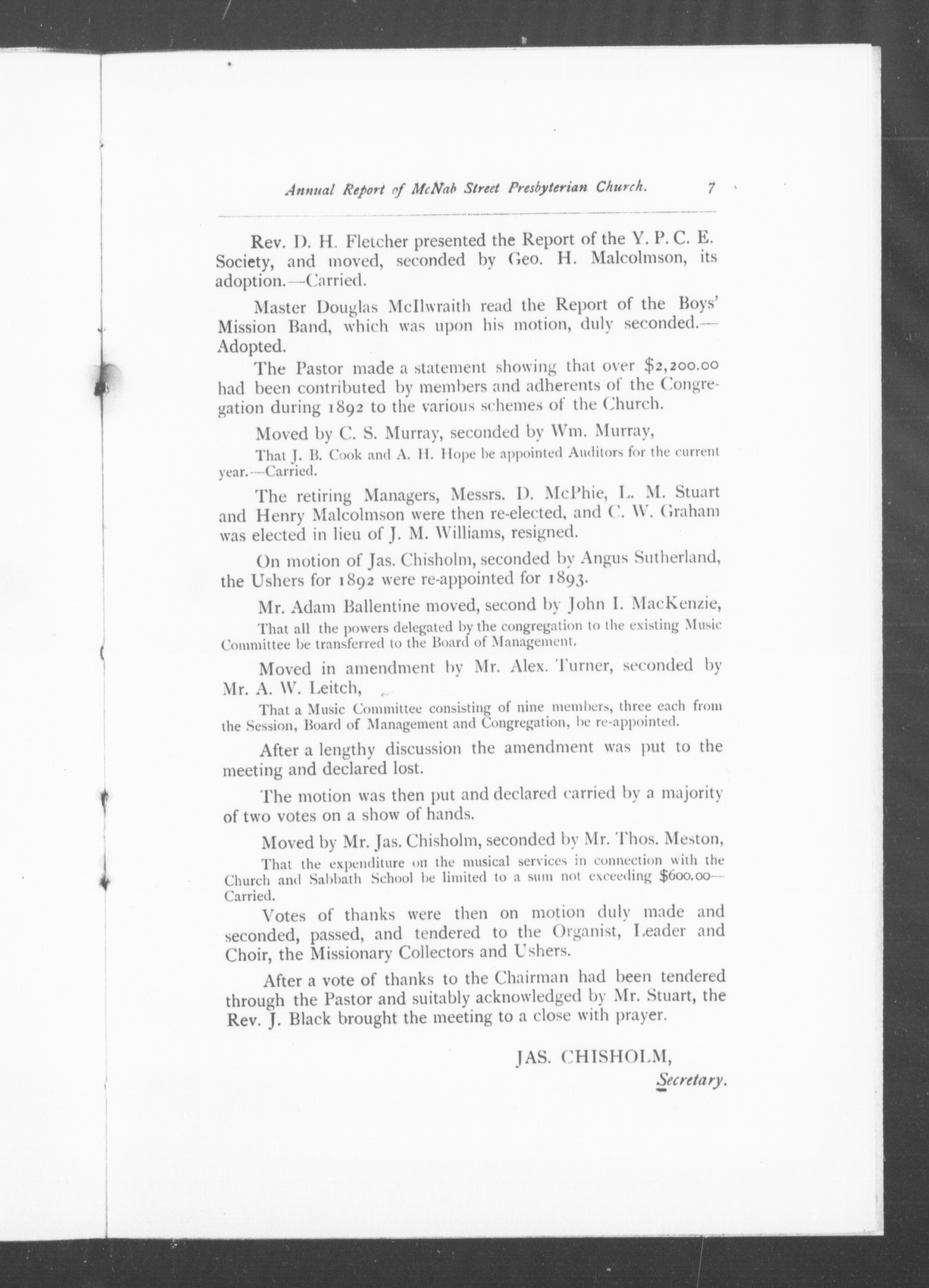 - 38th annual report of the McNab Street Presbyterian Church of Hamilton, Ontario, for the year 1892 : 38th (1892)