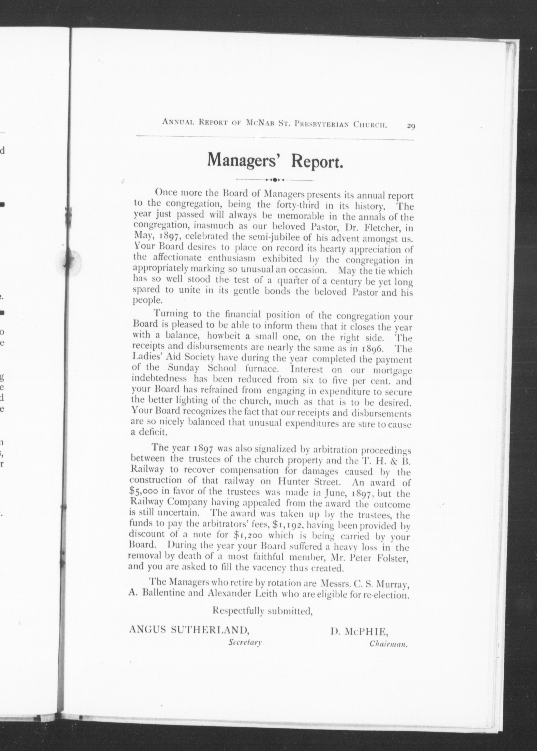 43rd annual report of the McNab St. Presbyterian Church, Hamilton, Ontario, Canada, for the year 1897 : 43rd (1897)