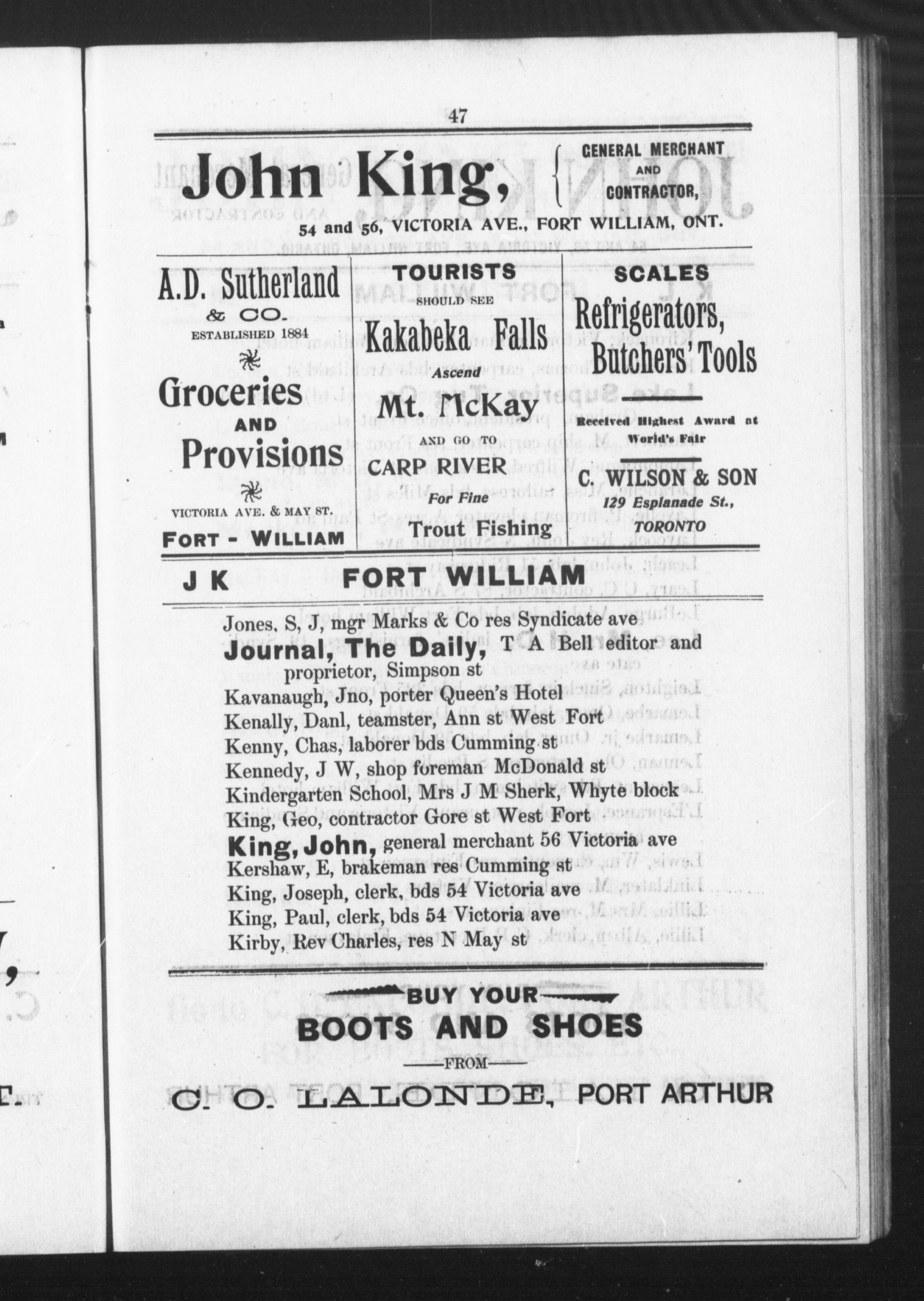 Case's directory of Fort William, Port Arthur and district of Thunder Bay for 1894 : First (1894)