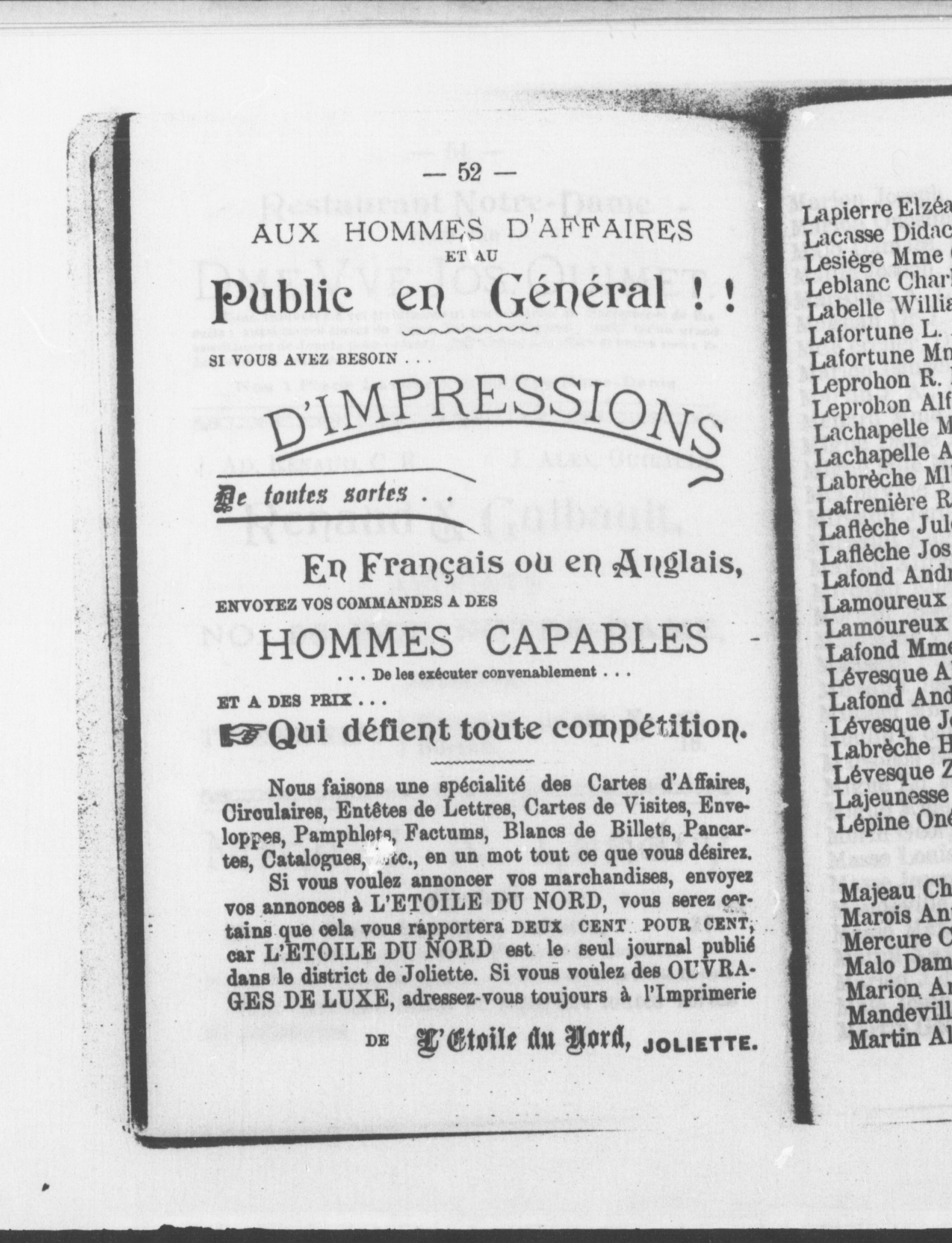 - Joliette [Québec] : Publié par [Alb]ert Gervais, 1898