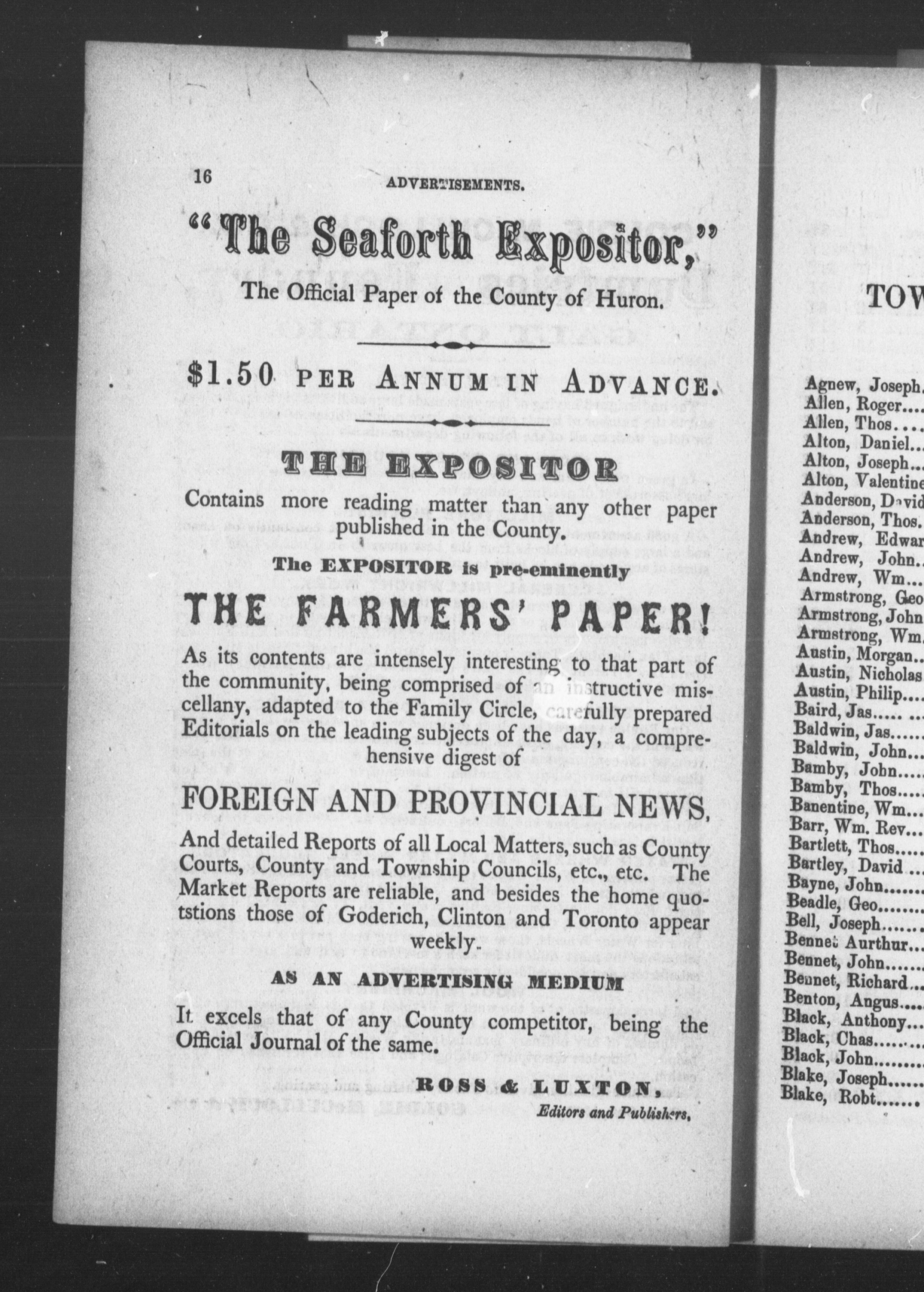 Sutherland's county of Huron gazetteer and general directory for ... : Sutherland's county of Huron gazetteer and general directory for 1869-70 : 1869/70
