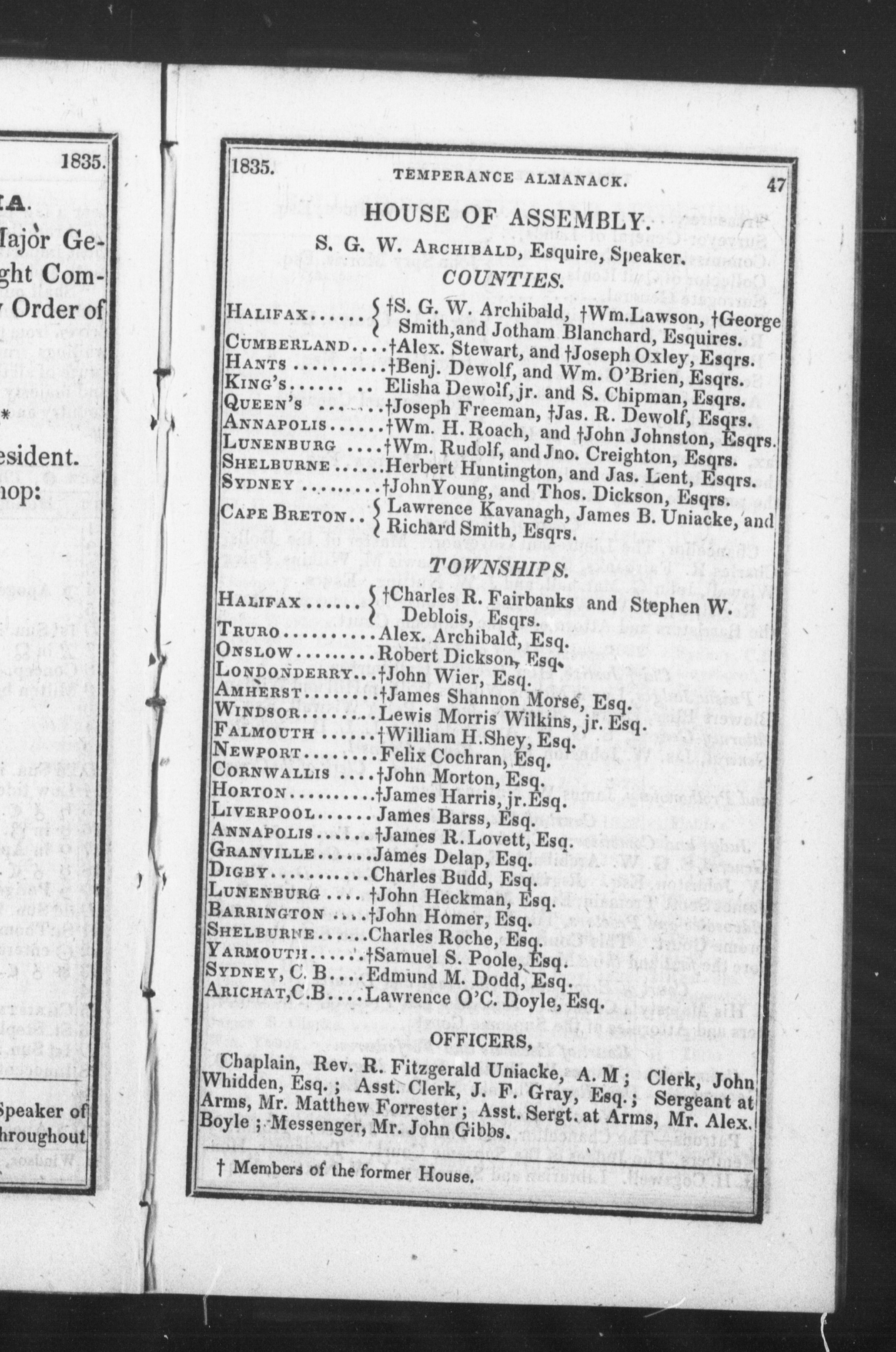 Nova Scotia temperance almanack for the year of our Lord 1835 : 1835