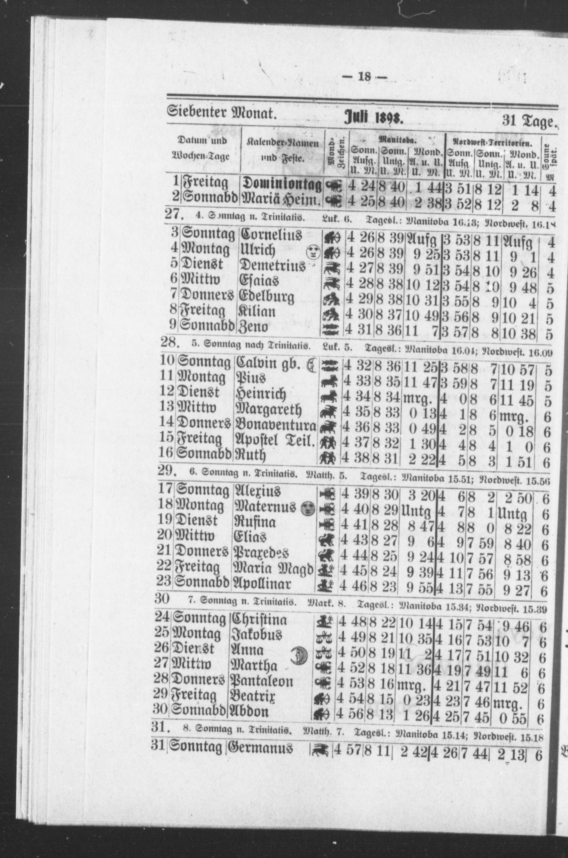 Der Nordwesten-kalender für das Jahr ... : Der Nordwesten-kalender für das Jahr 1898 : 1898