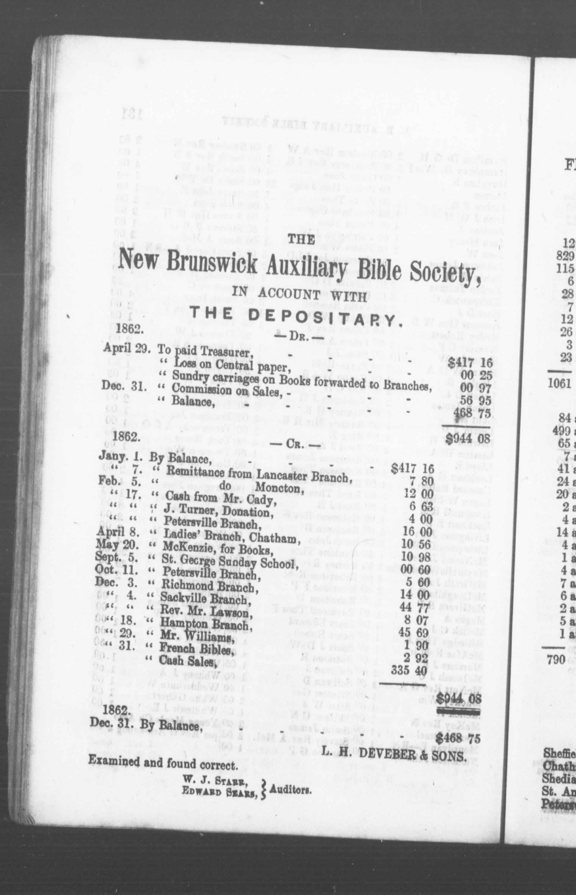 - The forty-third report of the New Brunswick Auxiliary Bible Society : Forty-Third (1862/63)