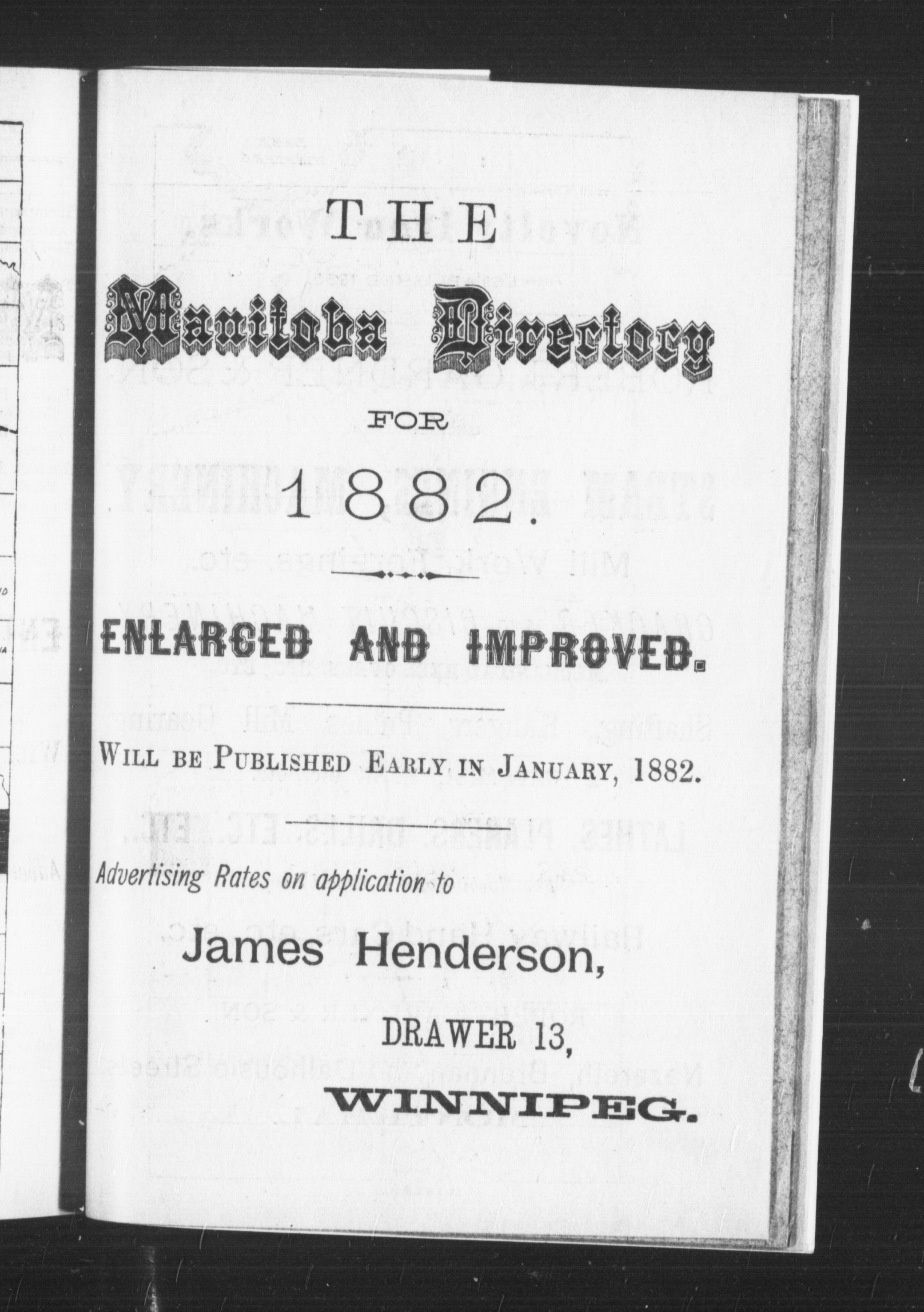 Henderson's directory of Manitoba, the city of Winnipeg and incorporated towns of Manitoba (Emerson and Portage La Prairie) ... for the year 1881 : Second Edition (1881)