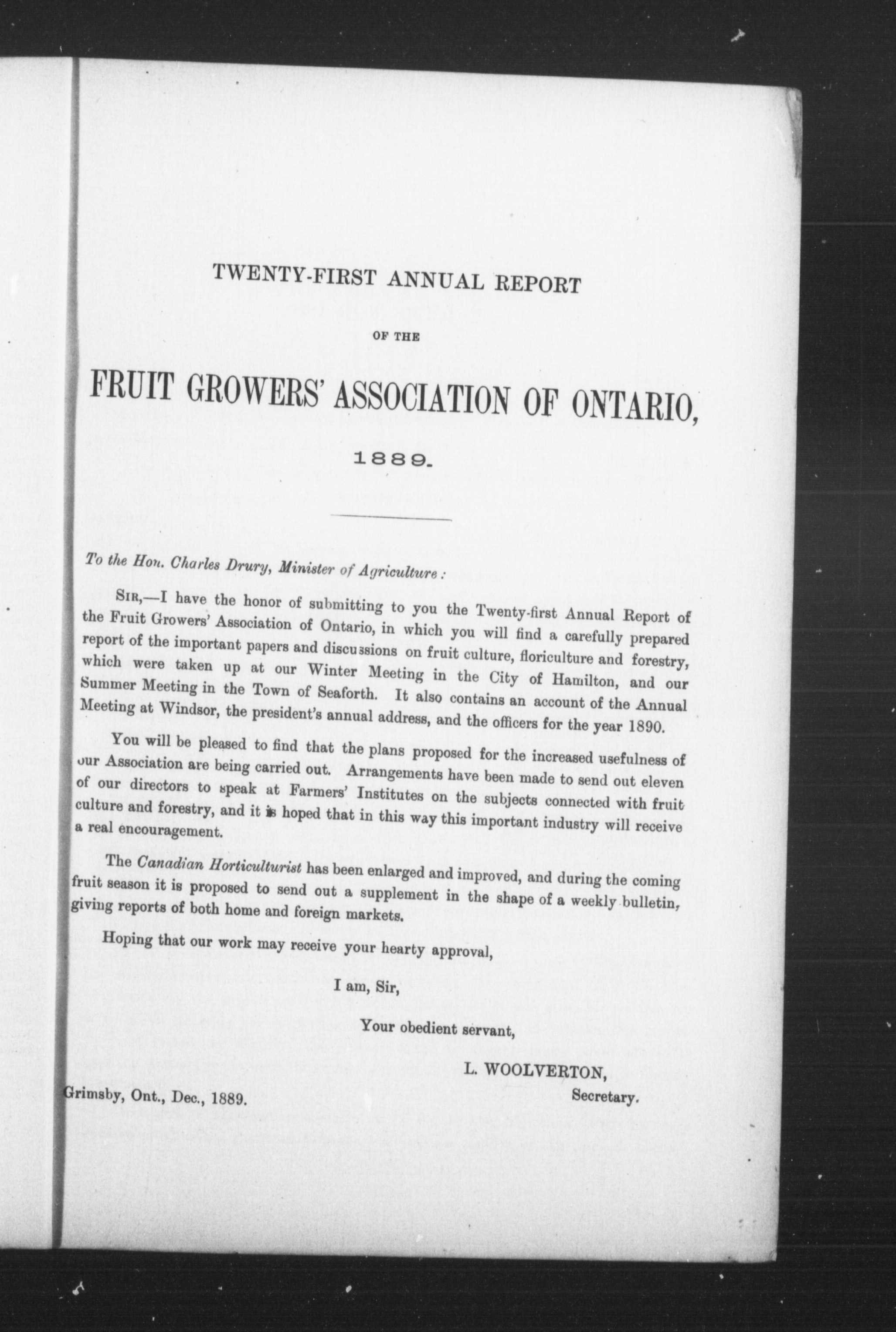 Annual report of the Fruit Growers' Association of Ontario : Twenty-first annual report of the Fruit Growers' Association of Ontario : Twenty-First (1889)