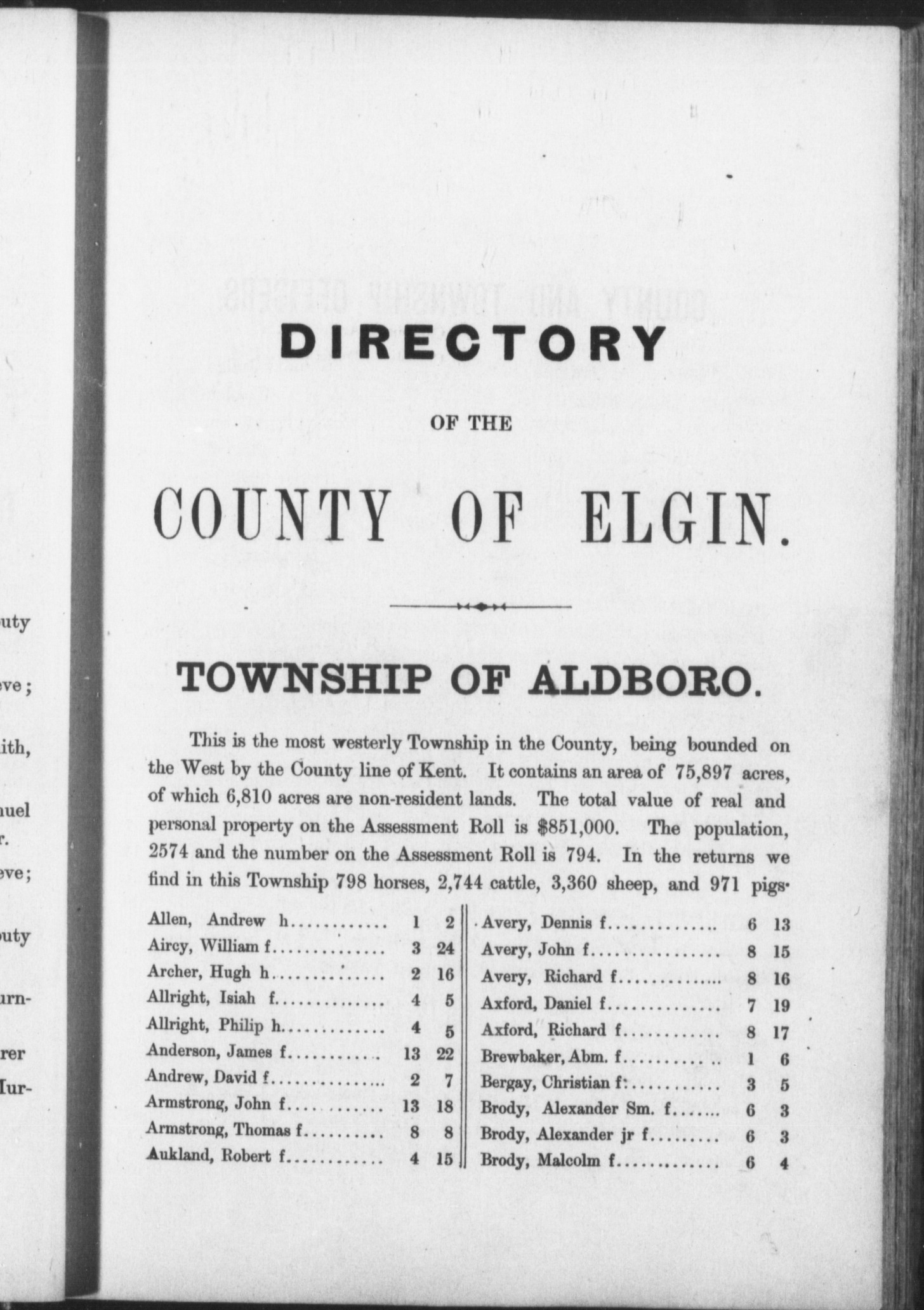 - Armstrong & Co's County of Elgin gazetteer and directory for 1872 : 1872