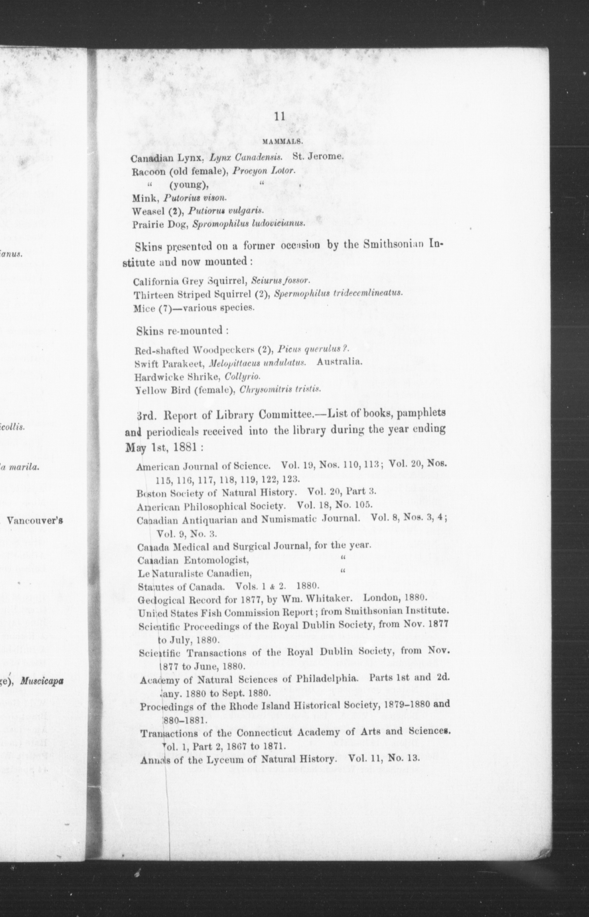 Proceedings at the annual meeting of the Natural History Society of Montreal for the year ending May ... : Proceedings at the annual meeting of the Natural History Society of Montreal, for the year ending May, 1881 : 1881