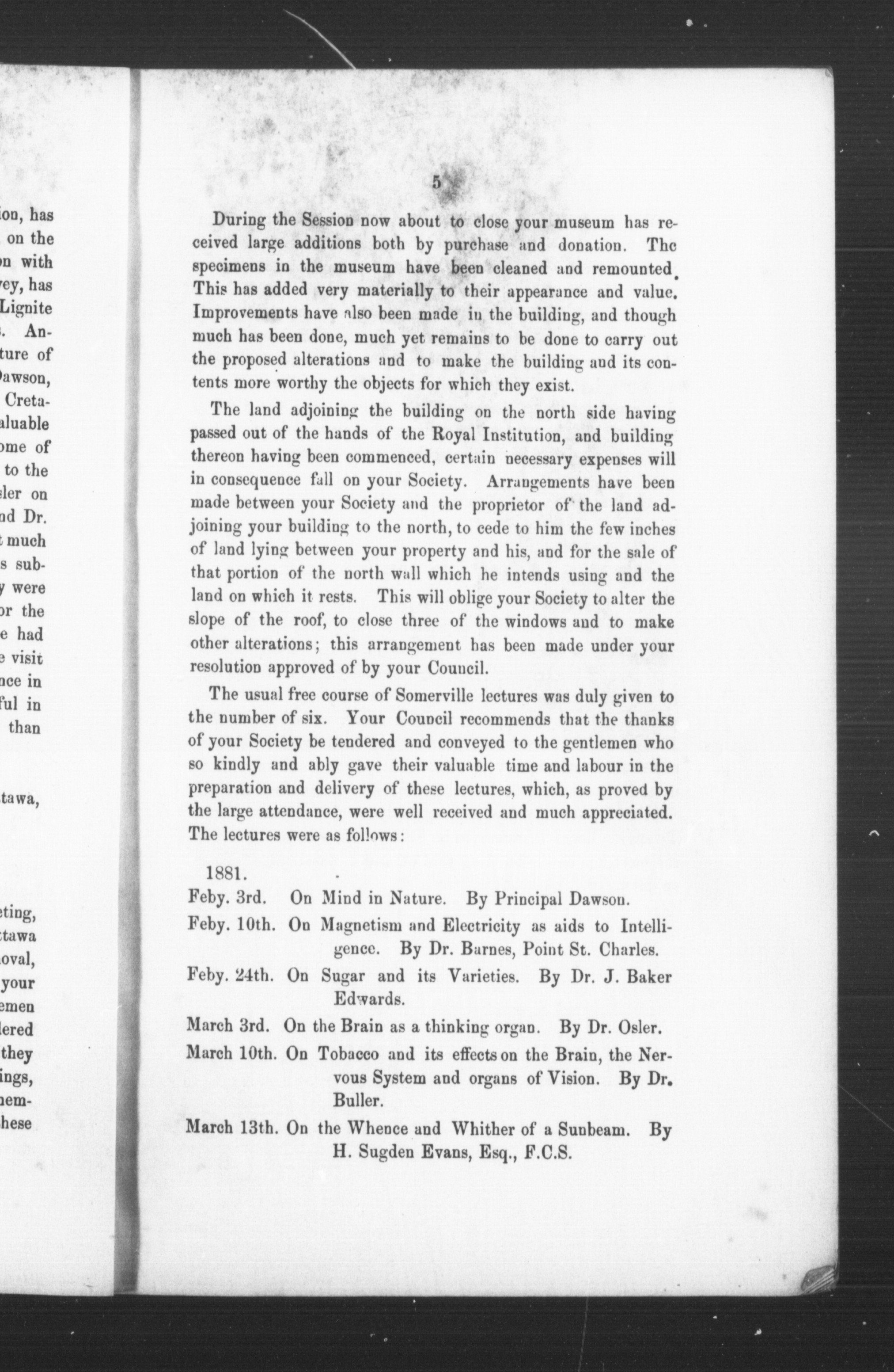 Proceedings at the annual meeting of the Natural History Society of Montreal for the year ending May ... : Proceedings at the annual meeting of the Natural History Society of Montreal, for the year ending May, 1881 : 1881