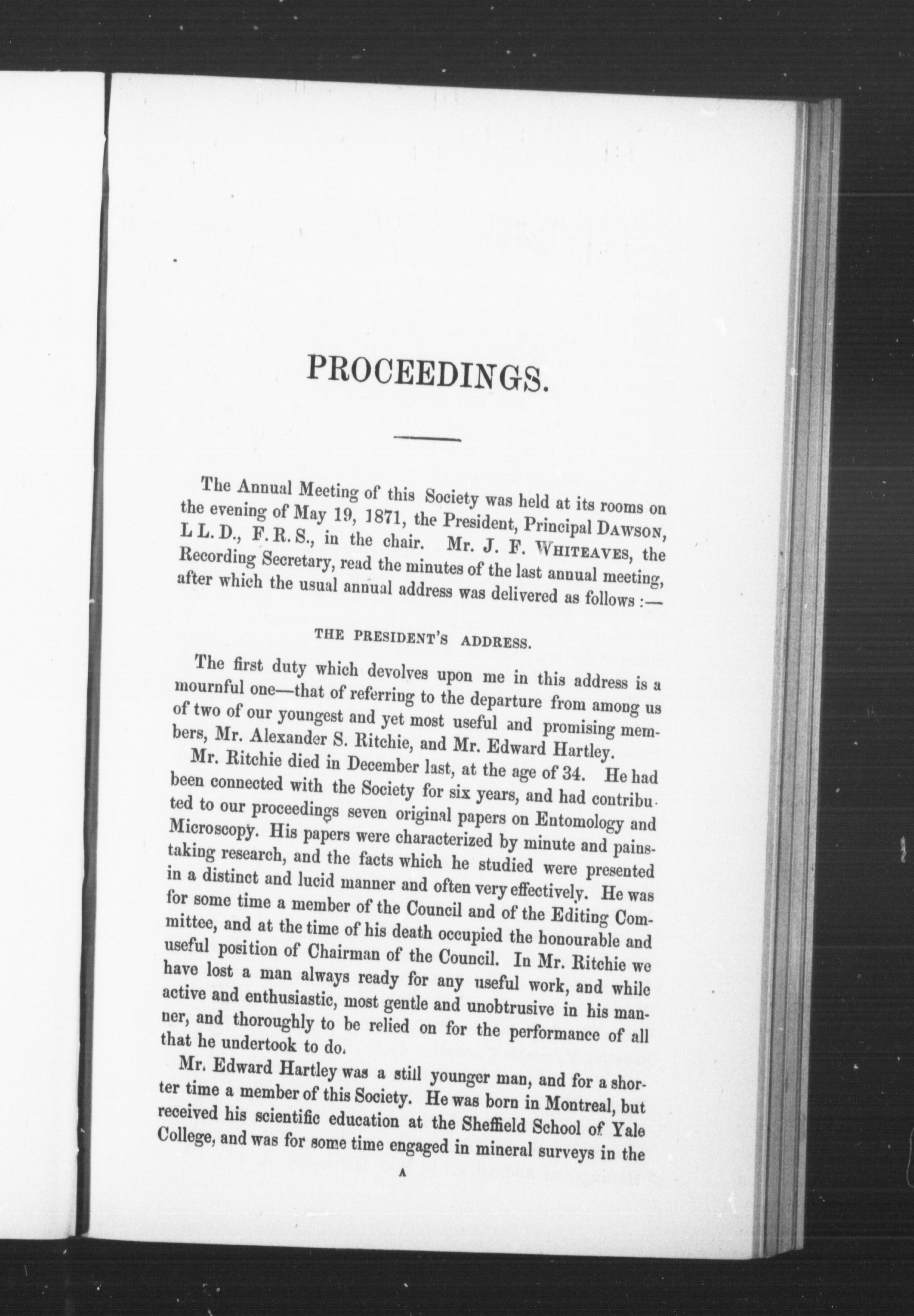 - Proceedings at the annual meeting of the Natural History Society of Montreal, for the year ending May, 1871 : 1871