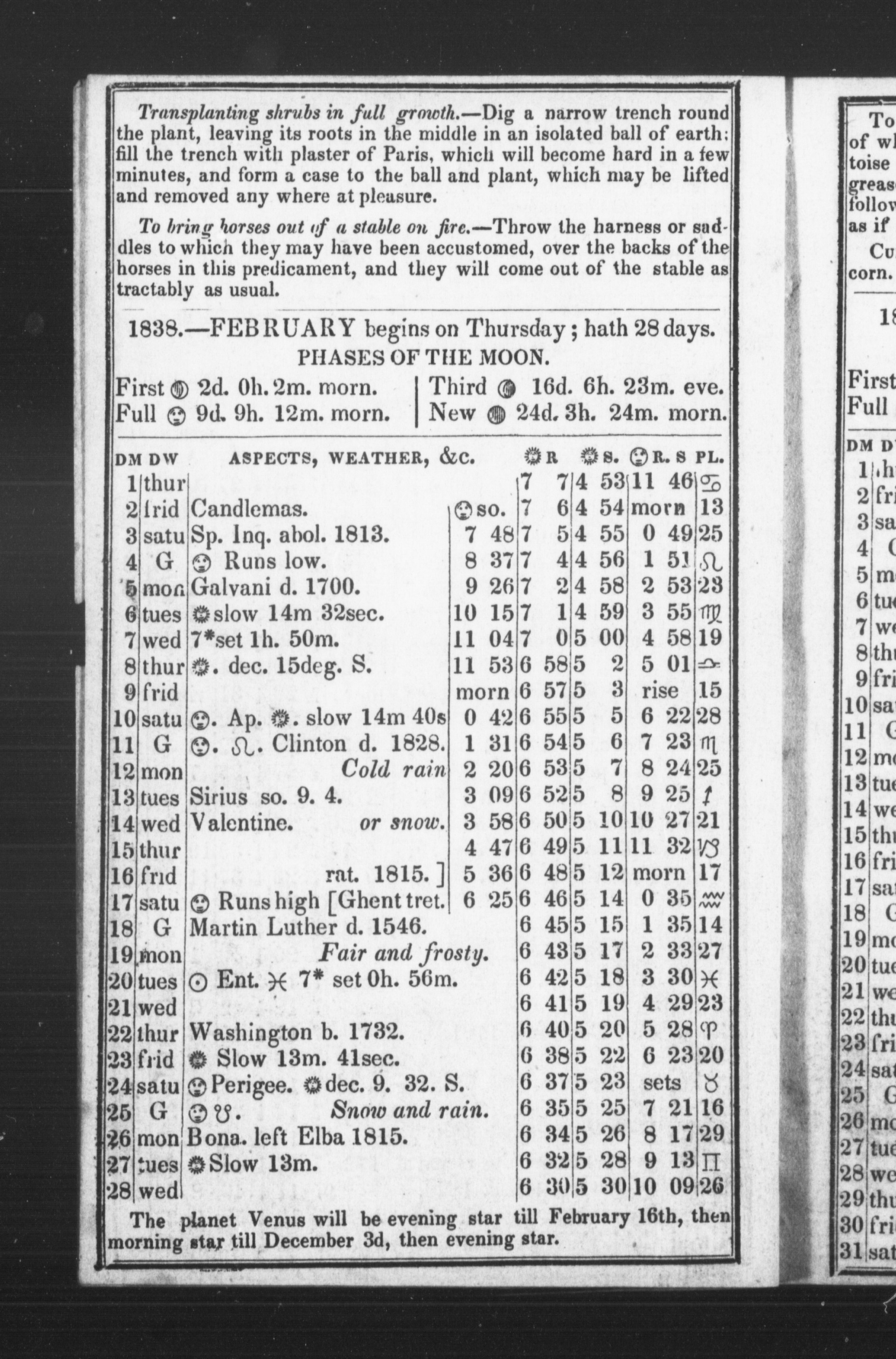 The Upper Canada almanack for the year of our Lord ... : The Upper Canada almanack for the year of our Lord 1838 : 1838