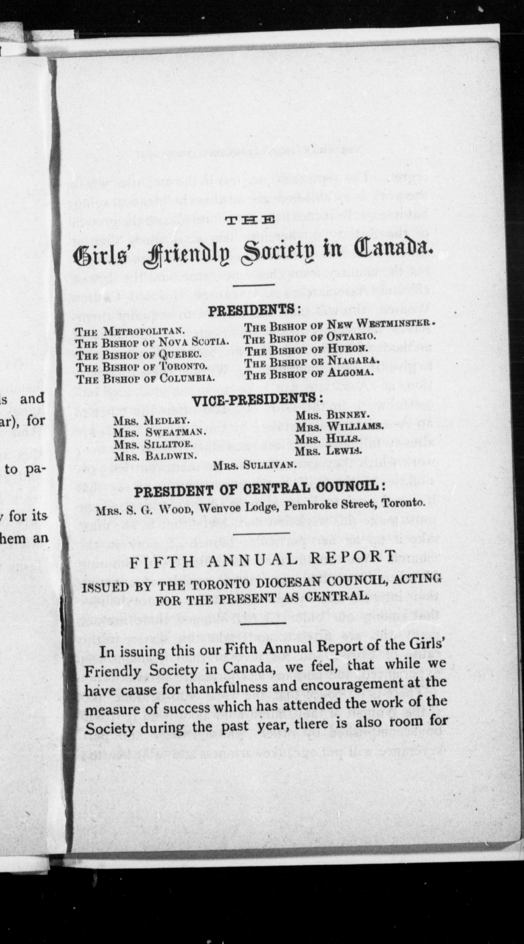 - [Toronto] : [Girls' Friendly Society in Canada], 1888