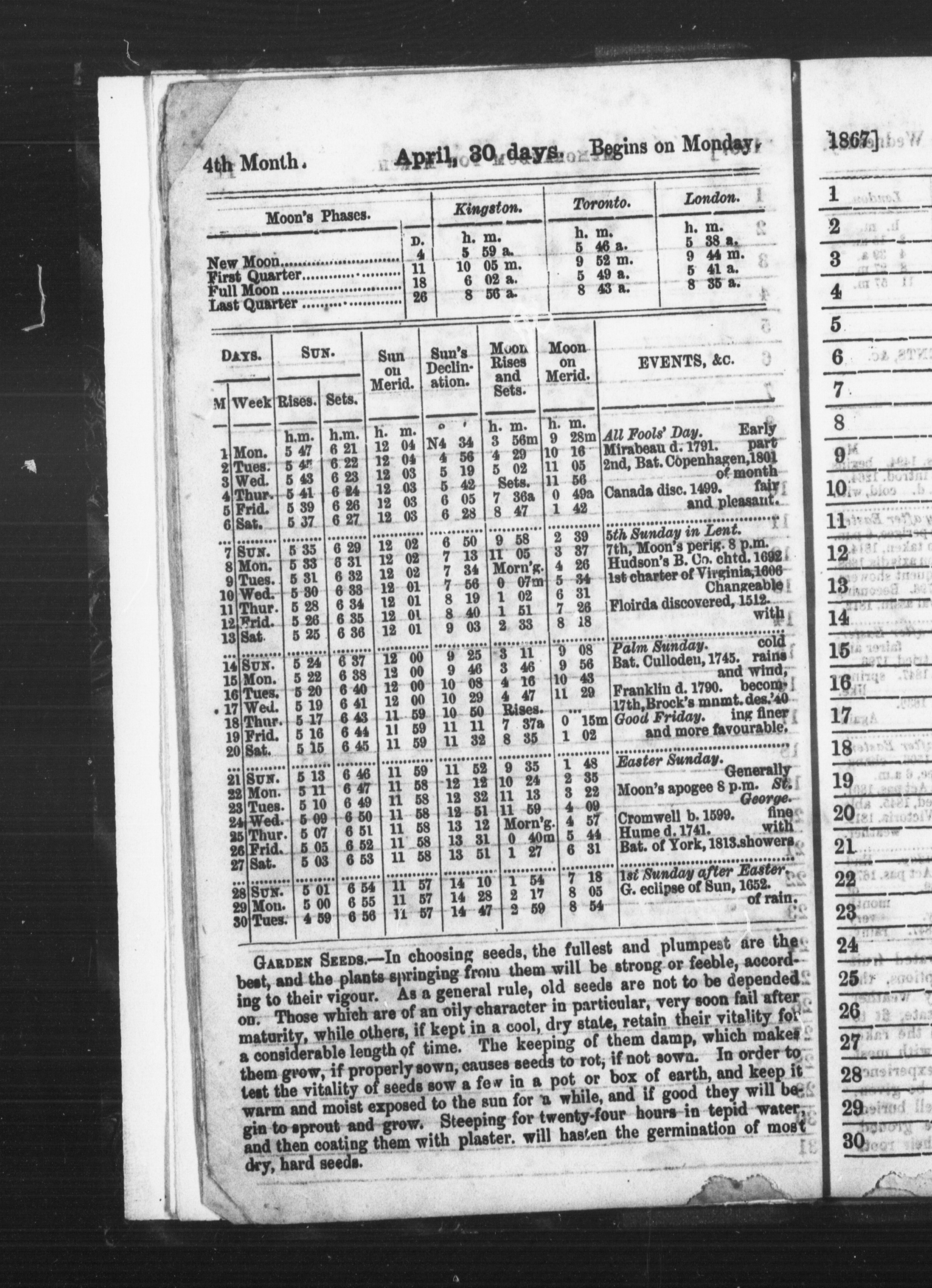 The Spectator Canadian farmer's almanac for the year of Our Lord 1867 : 1867