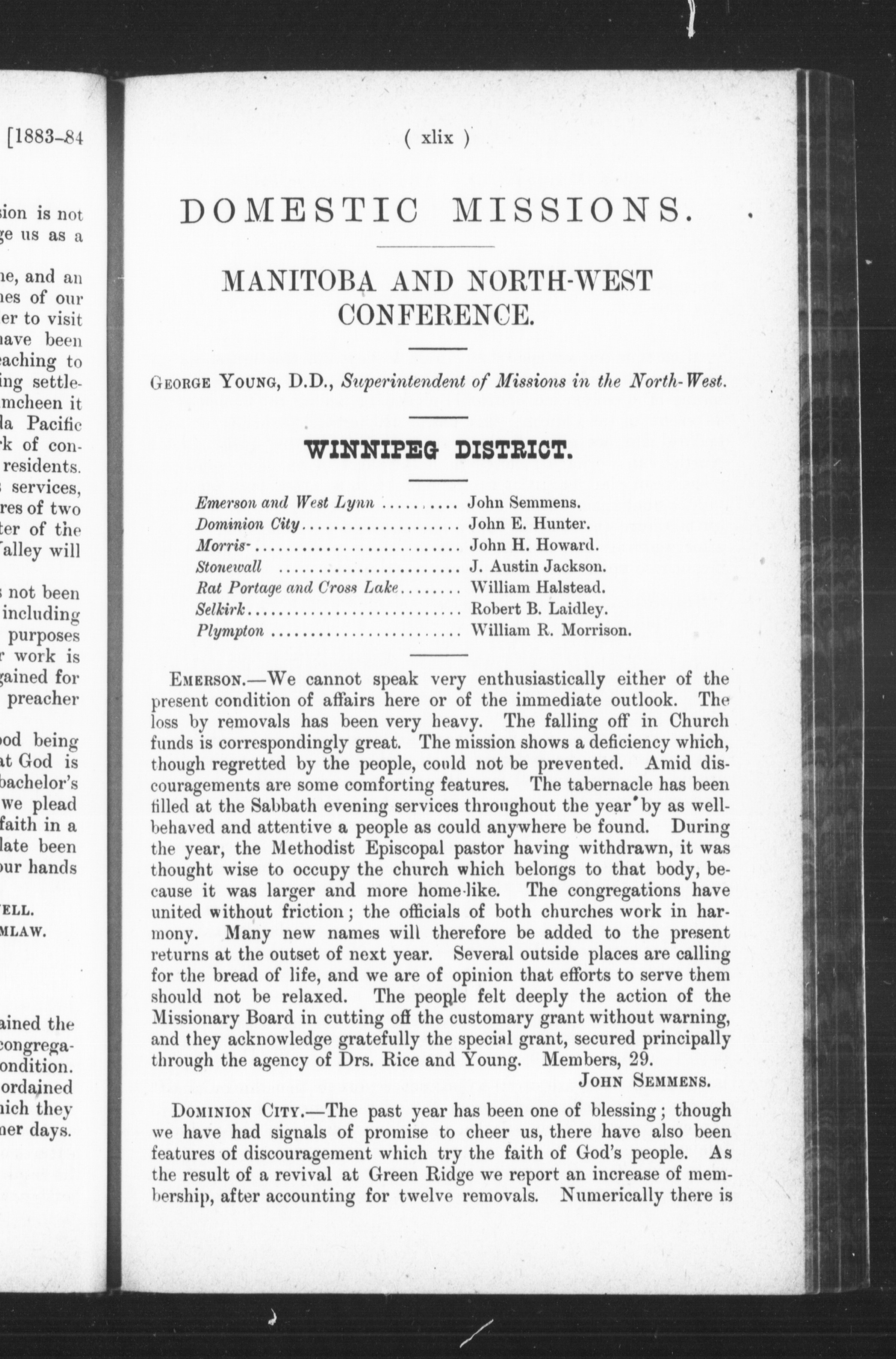 - Annual report of the Auxiliary Missionary Society of the Manitoba and North-West Conference from June, 1883, to June, 1884 / The Missionary Society of the Methodist Church of Canada : 1883/1884