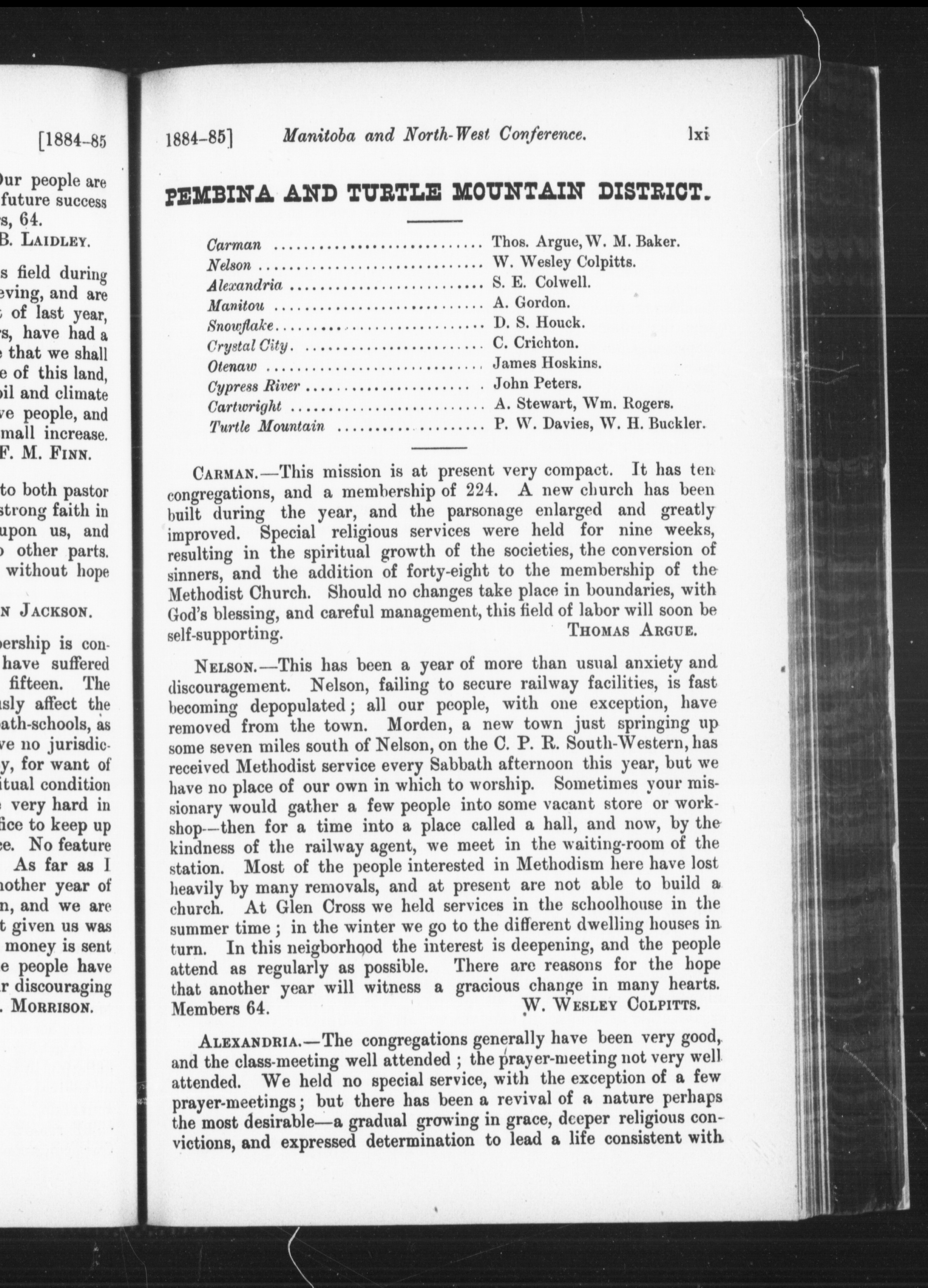 - Annual report of the Auxiliary Missionary Society of the Manitoba and North-West Conference from June, 1884, to June, 1885 / The Misisonary Society of the Methodist Church : 1884/1885