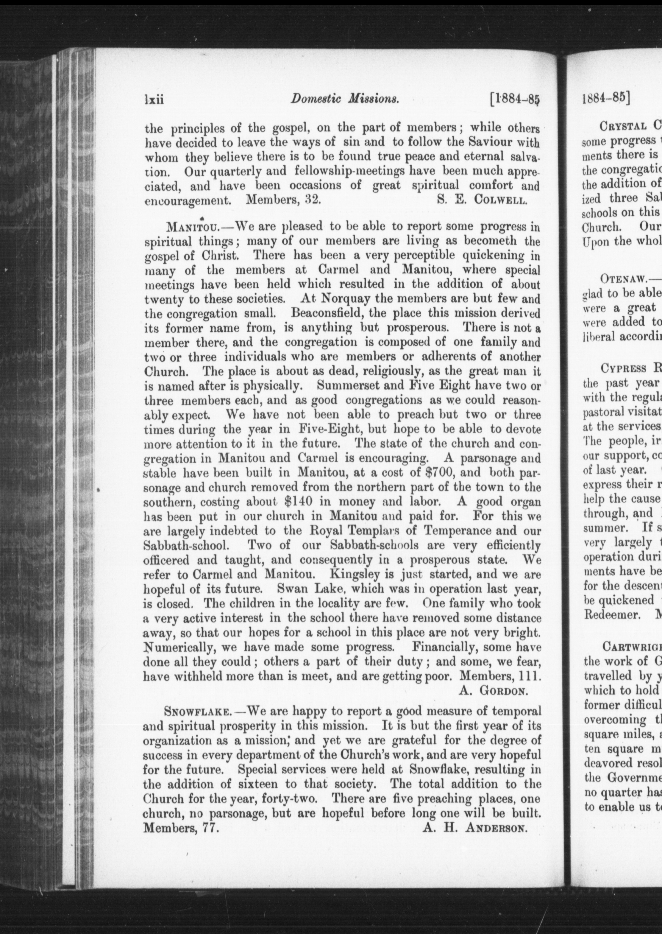 - Annual report of the Auxiliary Missionary Society of the Manitoba and North-West Conference from June, 1884, to June, 1885 / The Misisonary Society of the Methodist Church : 1884/1885