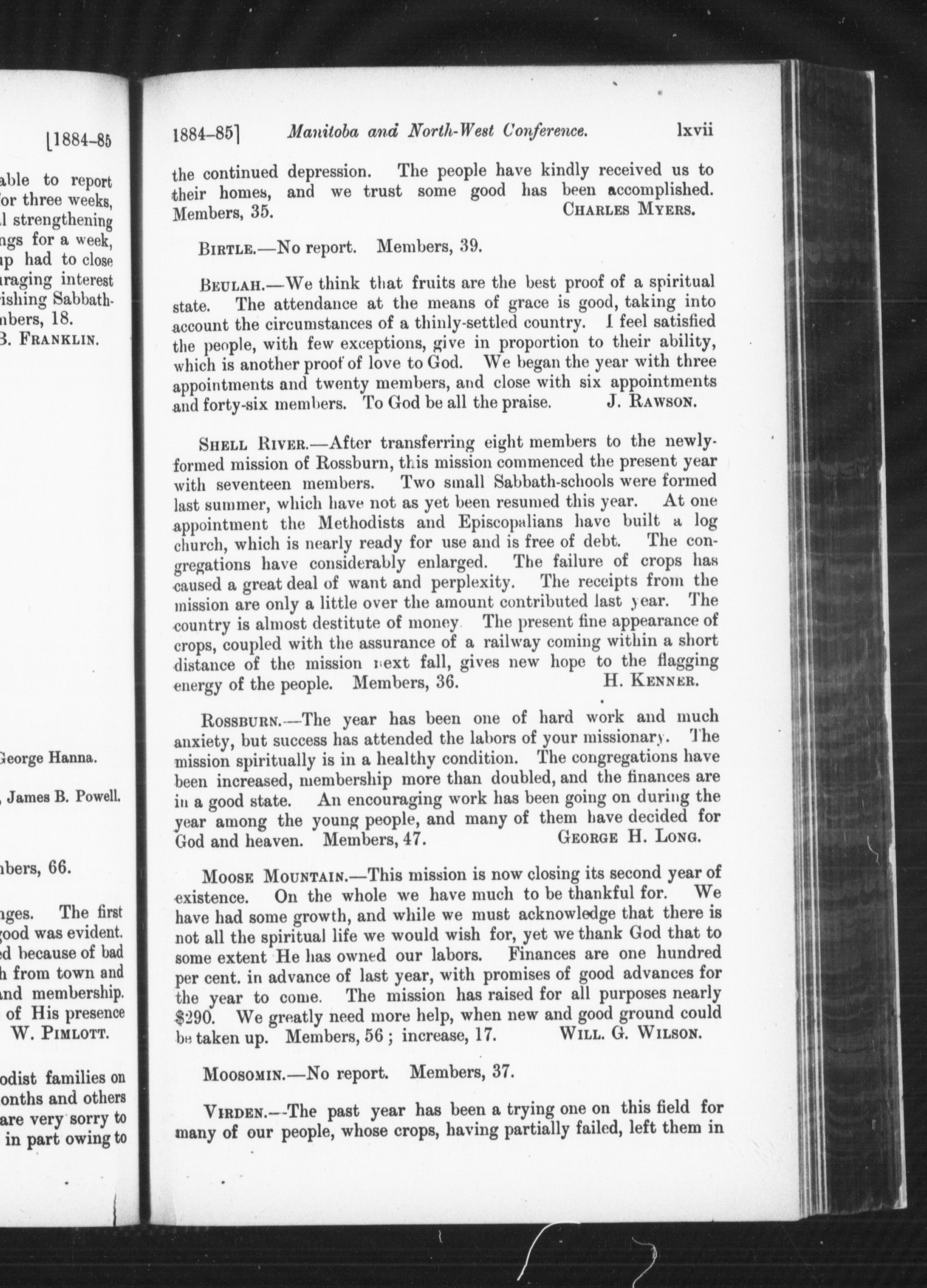 - Annual report of the Auxiliary Missionary Society of the Manitoba and North-West Conference from June, 1884, to June, 1885 / The Misisonary Society of the Methodist Church : 1884/1885
