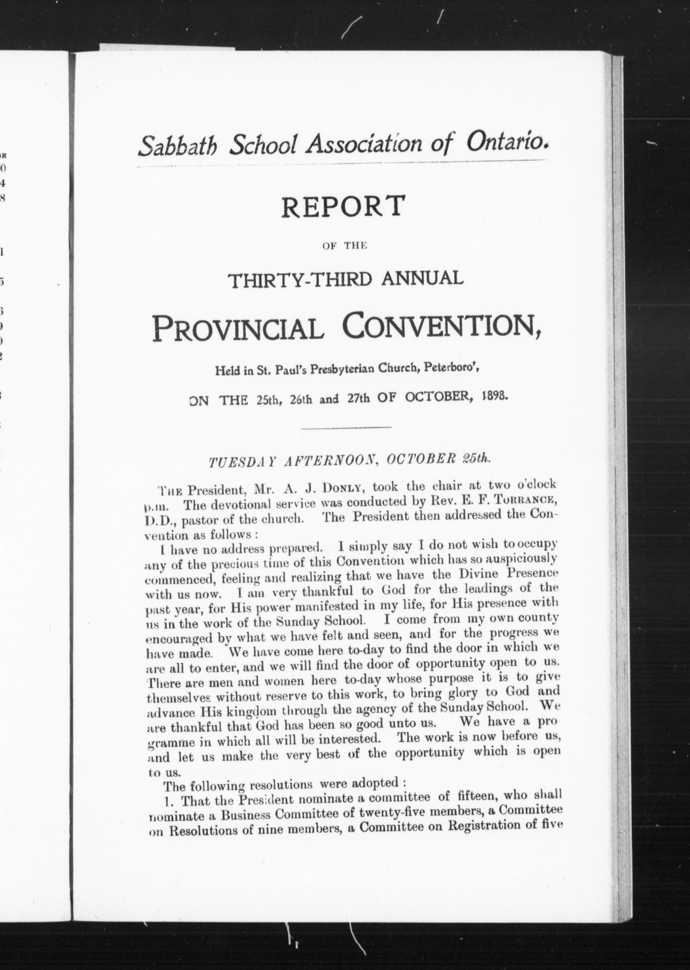 Proceedings of the ... Provincial Sabbath School Convention / : Lights along the shore : being a record of the Proceedings of the thirty-third Provincial Sabbath School Convention : Thirty-Third (1898)
