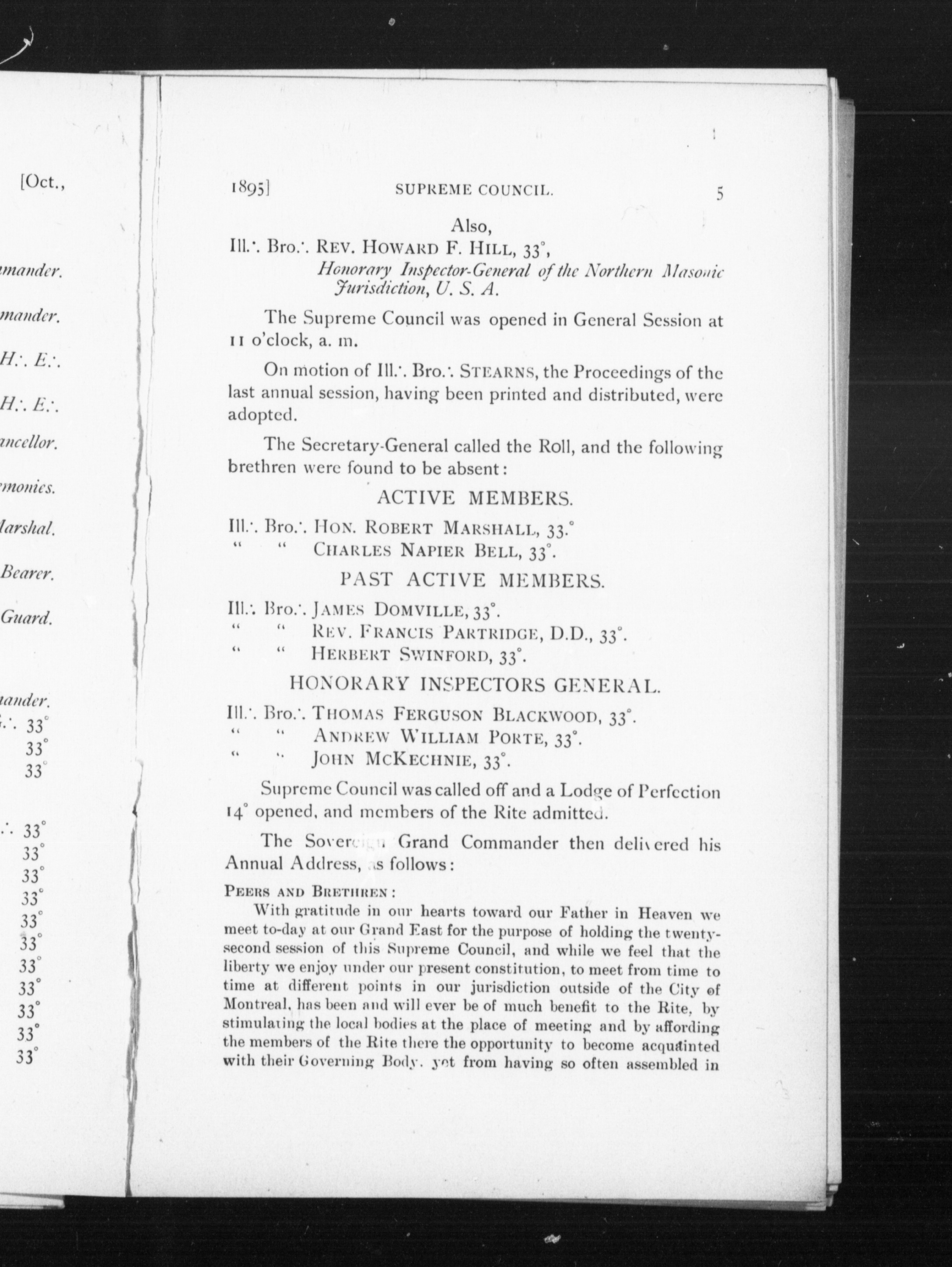 Proceedings of the Supreme Council of Sovereign Grand Inspectors General of the Thirty-Third and last degree, Ancient and Accepted Scottish Rite for the Dominion of Canada : Proceedings of the Supreme Council of Sovereign Grand Inspectors General of the Thirty-third and last degree, Ancient and Accepted Scottish Rite for the Dominion of Canada : 1895