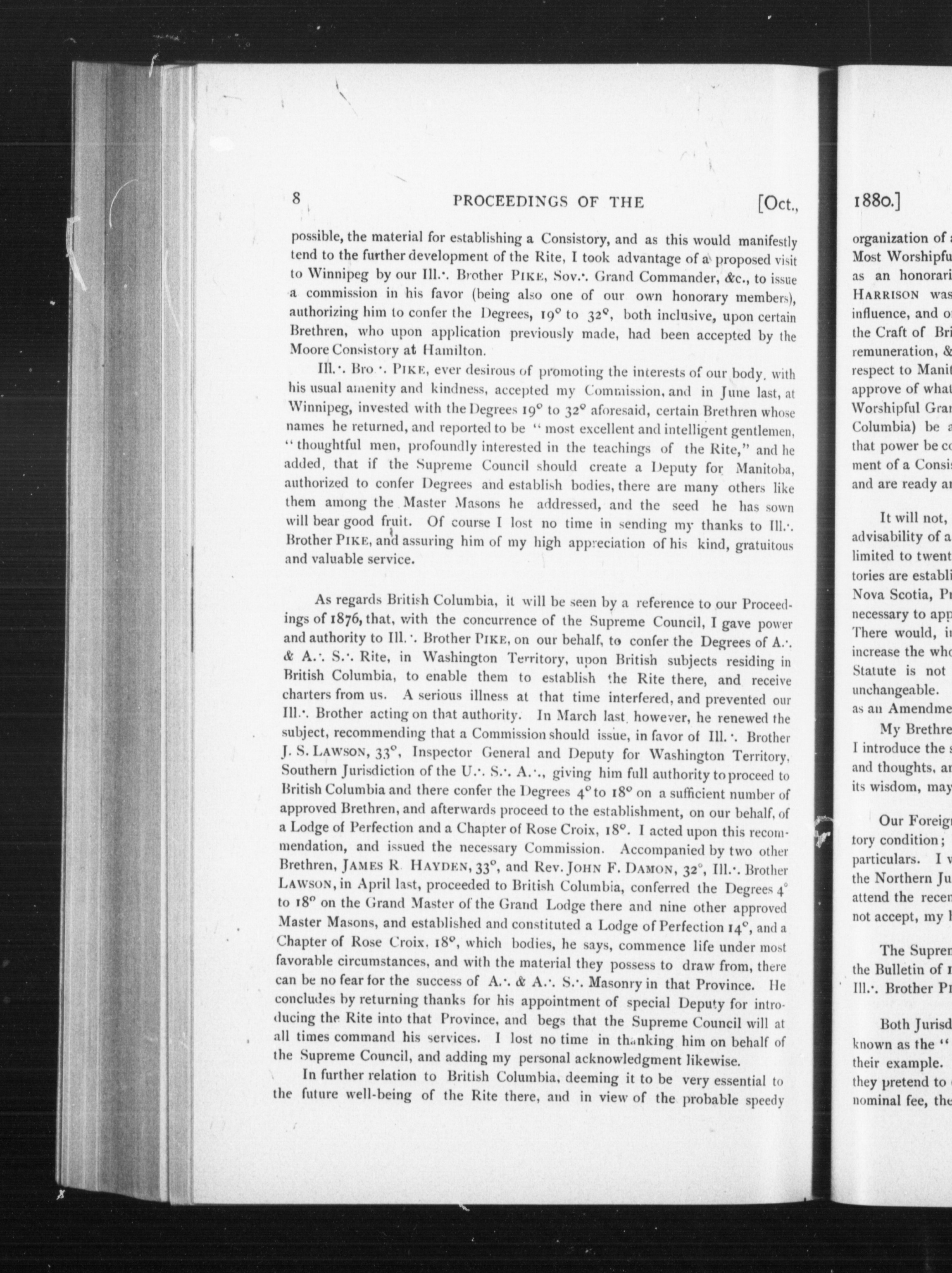Aide [Hamilton, Ont.] : [Supreme Council of Sovereign Grand Inspectors], 1880; 88 images avec recherche en texte intégral