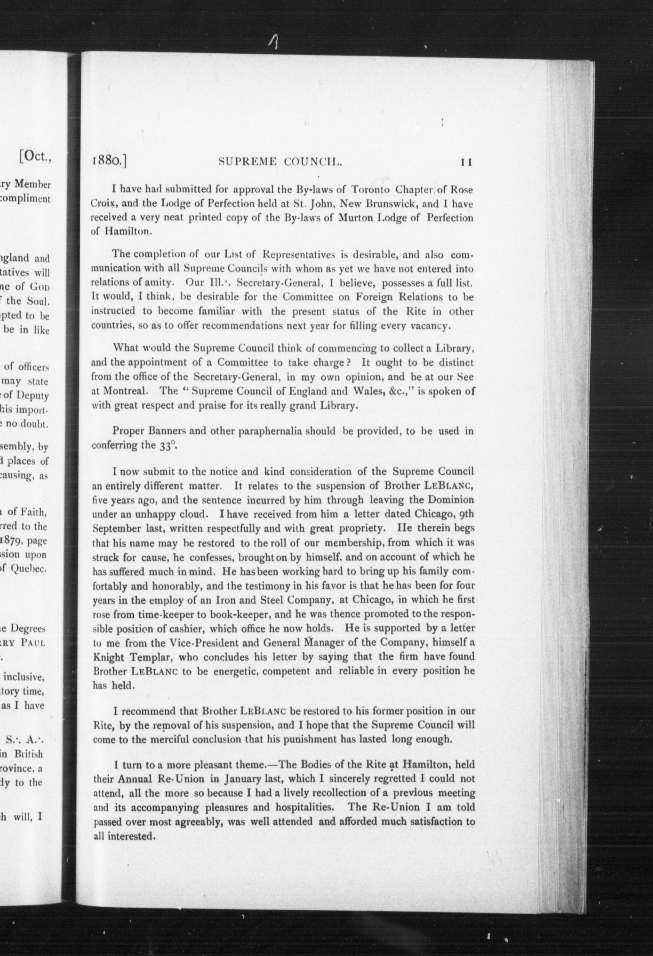 Aide [Hamilton, Ont.] : [Supreme Council of Sovereign Grand Inspectors], 1880; 88 images avec recherche en texte intégral