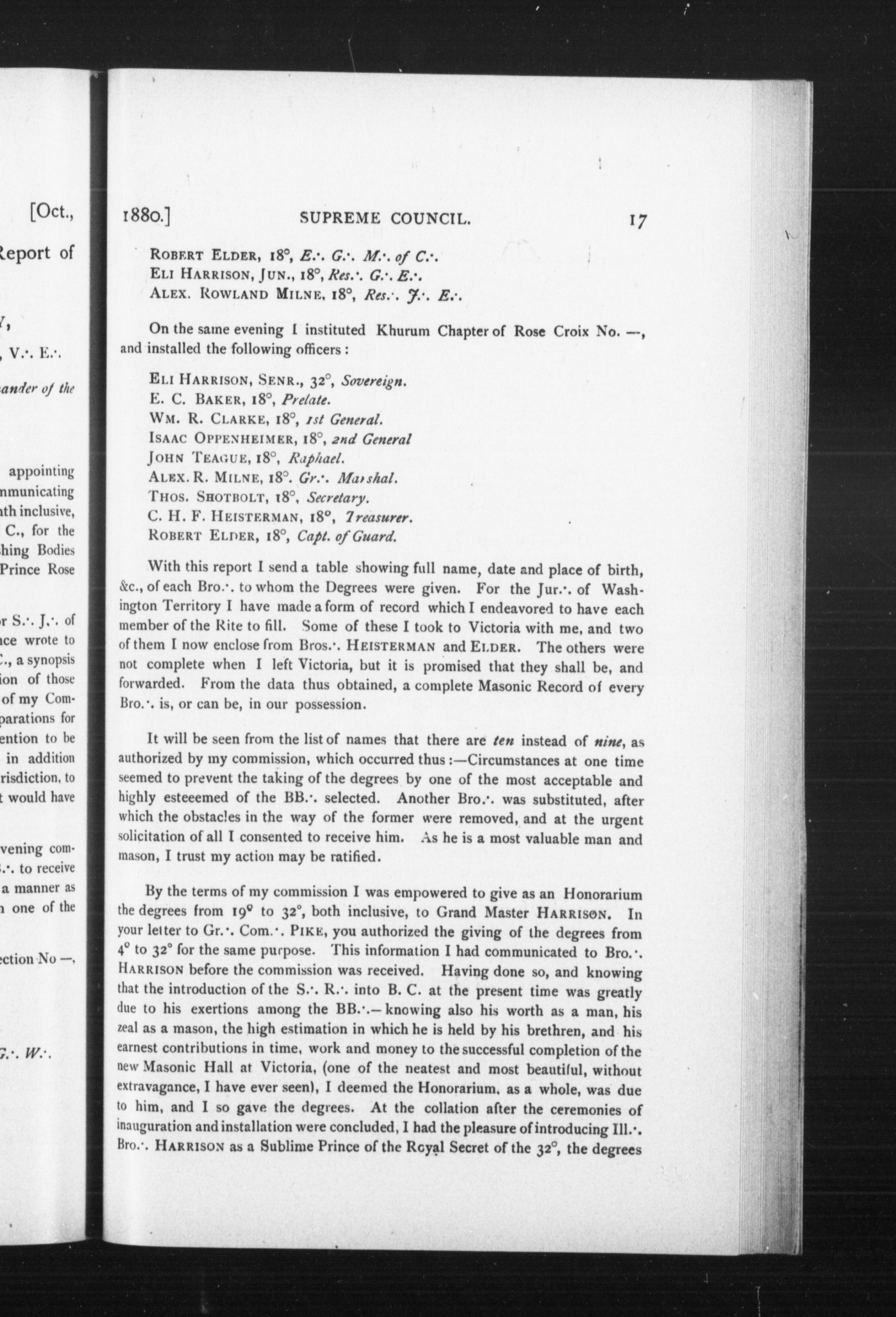 Aide [Hamilton, Ont.] : [Supreme Council of Sovereign Grand Inspectors], 1880; 88 images avec recherche en texte intégral