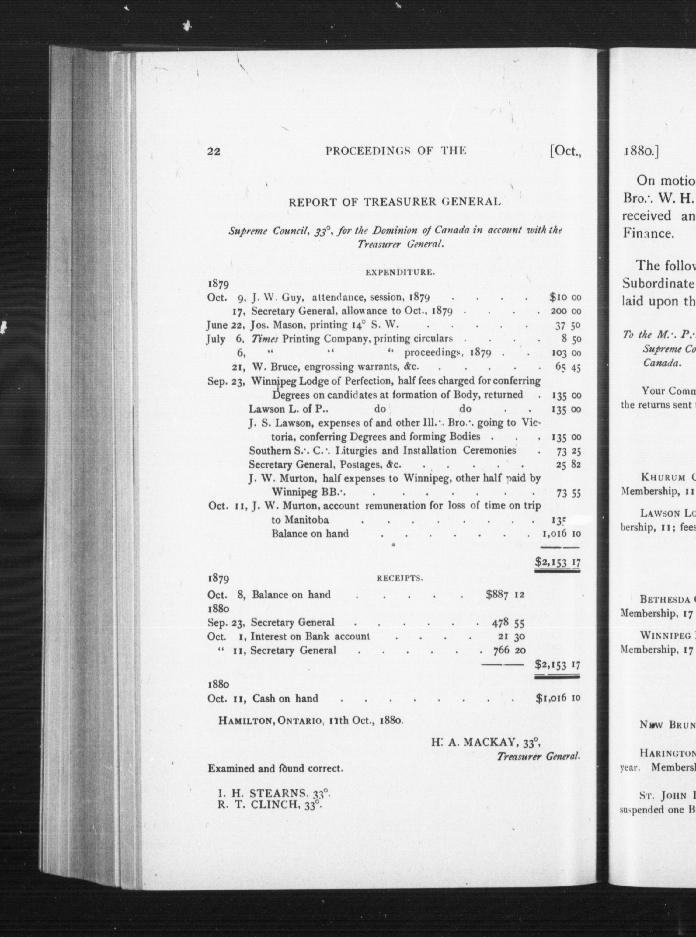 - Proceedings of the Supreme Council of Sovereign Grand Inspectors General of the Thirty-third and last degree, Ancient and Accepted Scottish Rite for the Dominion of Canada : 1880