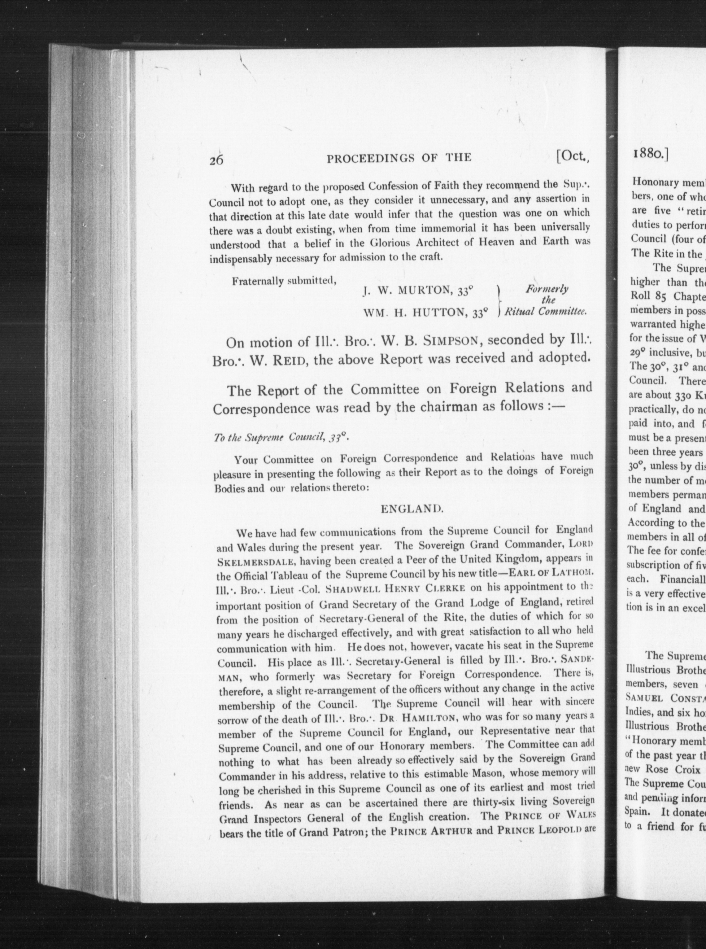 - [Hamilton, Ont.] : [Supreme Council of Sovereign Grand Inspectors], 1880