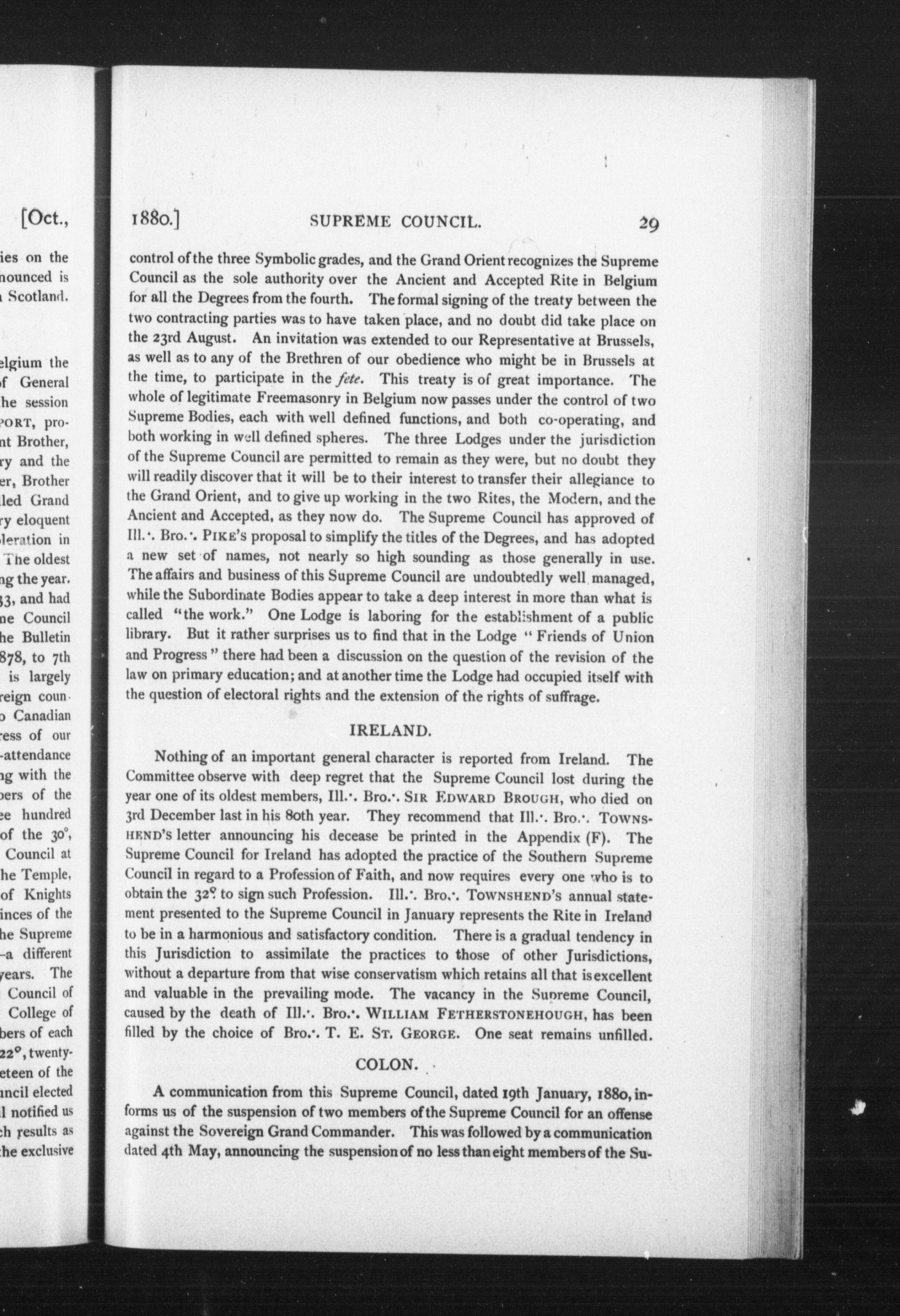 Aide [Hamilton, Ont.] : [Supreme Council of Sovereign Grand Inspectors], 1880; 88 images avec recherche en texte intégral