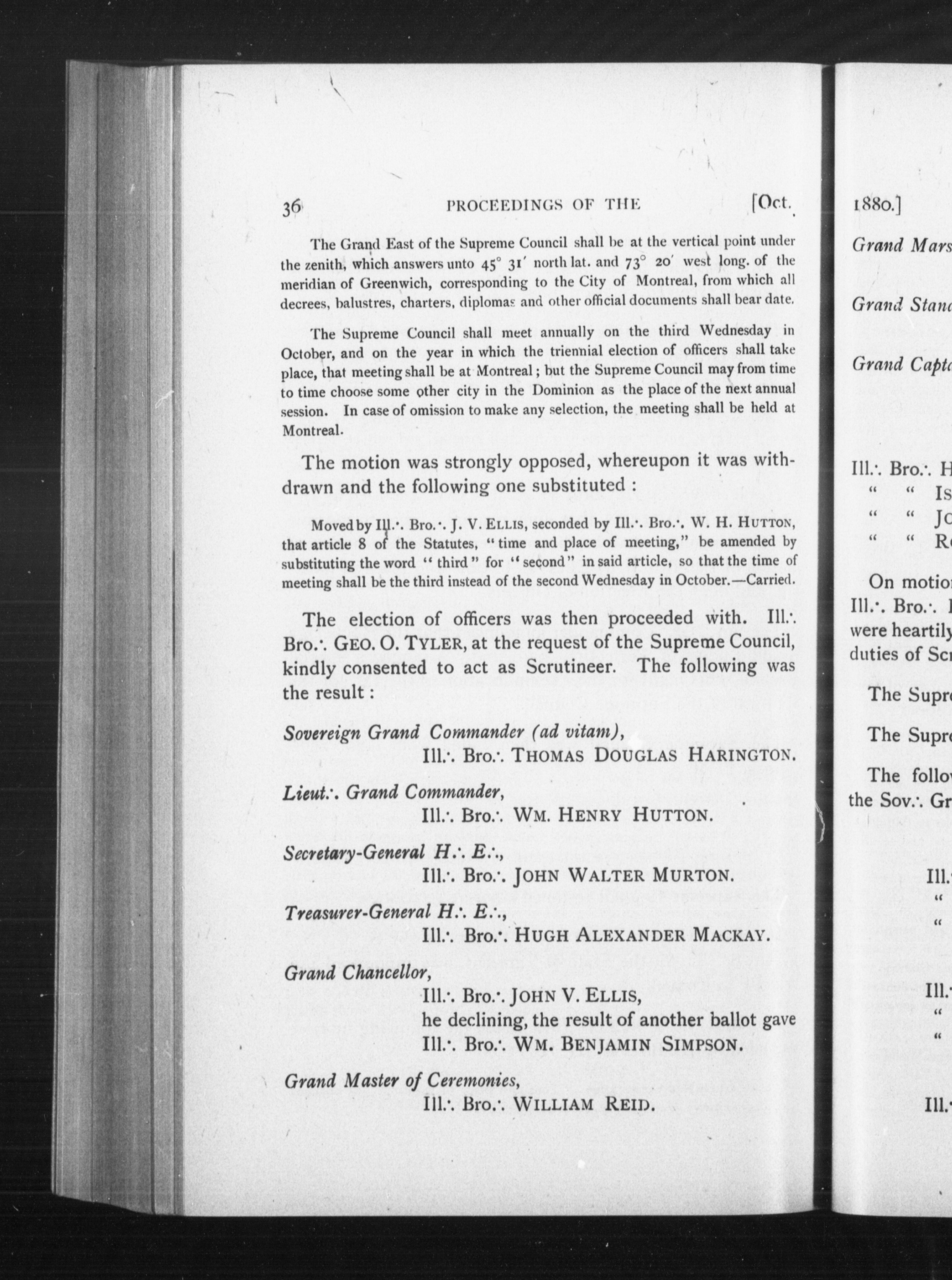 - Proceedings of the Supreme Council of Sovereign Grand Inspectors General of the Thirty-third and last degree, Ancient and Accepted Scottish Rite for the Dominion of Canada : 1880