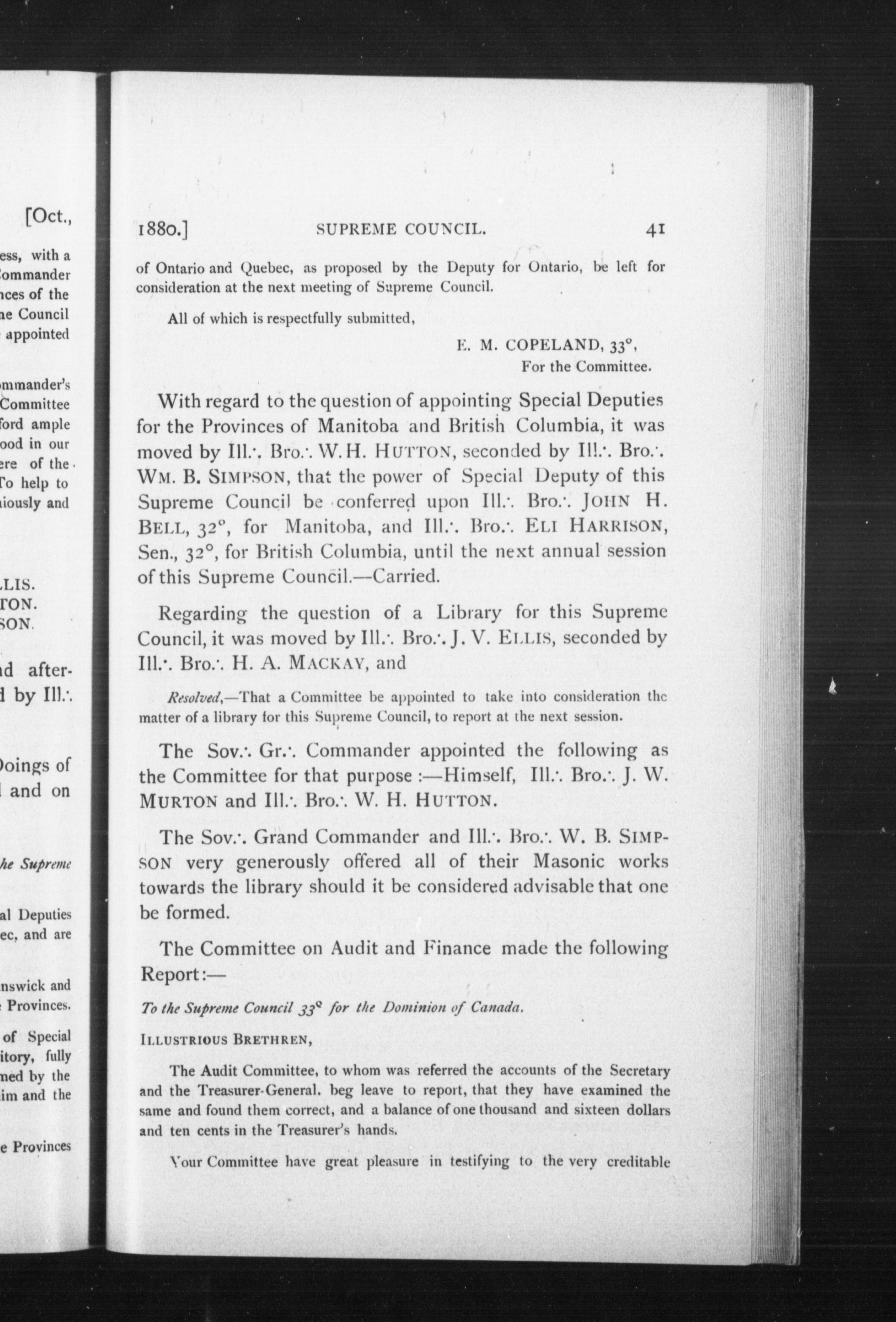 - Proceedings of the Supreme Council of Sovereign Grand Inspectors General of the Thirty-third and last degree, Ancient and Accepted Scottish Rite for the Dominion of Canada : 1880