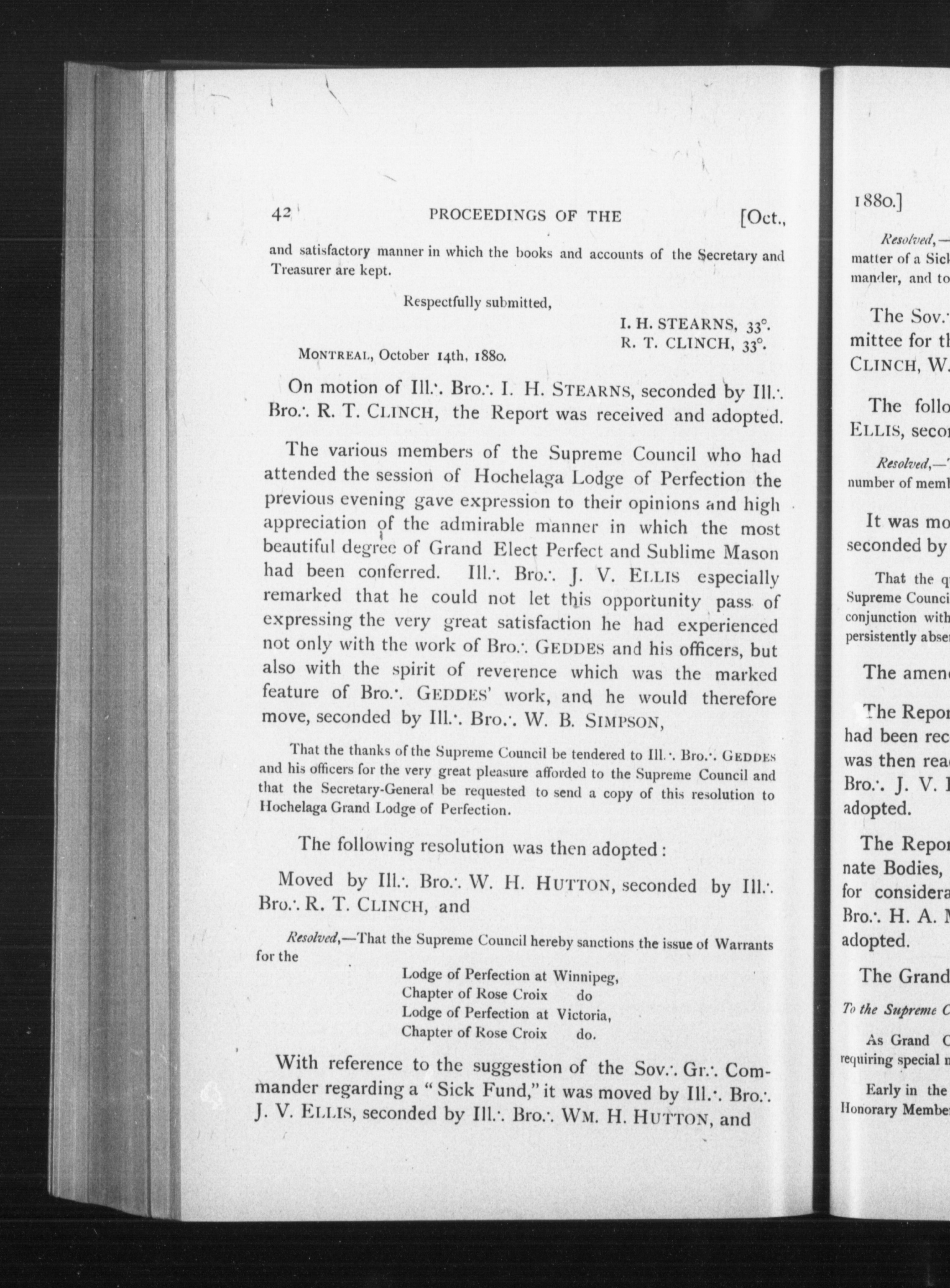 Aide [Hamilton, Ont.] : [Supreme Council of Sovereign Grand Inspectors], 1880; 88 images avec recherche en texte intégral