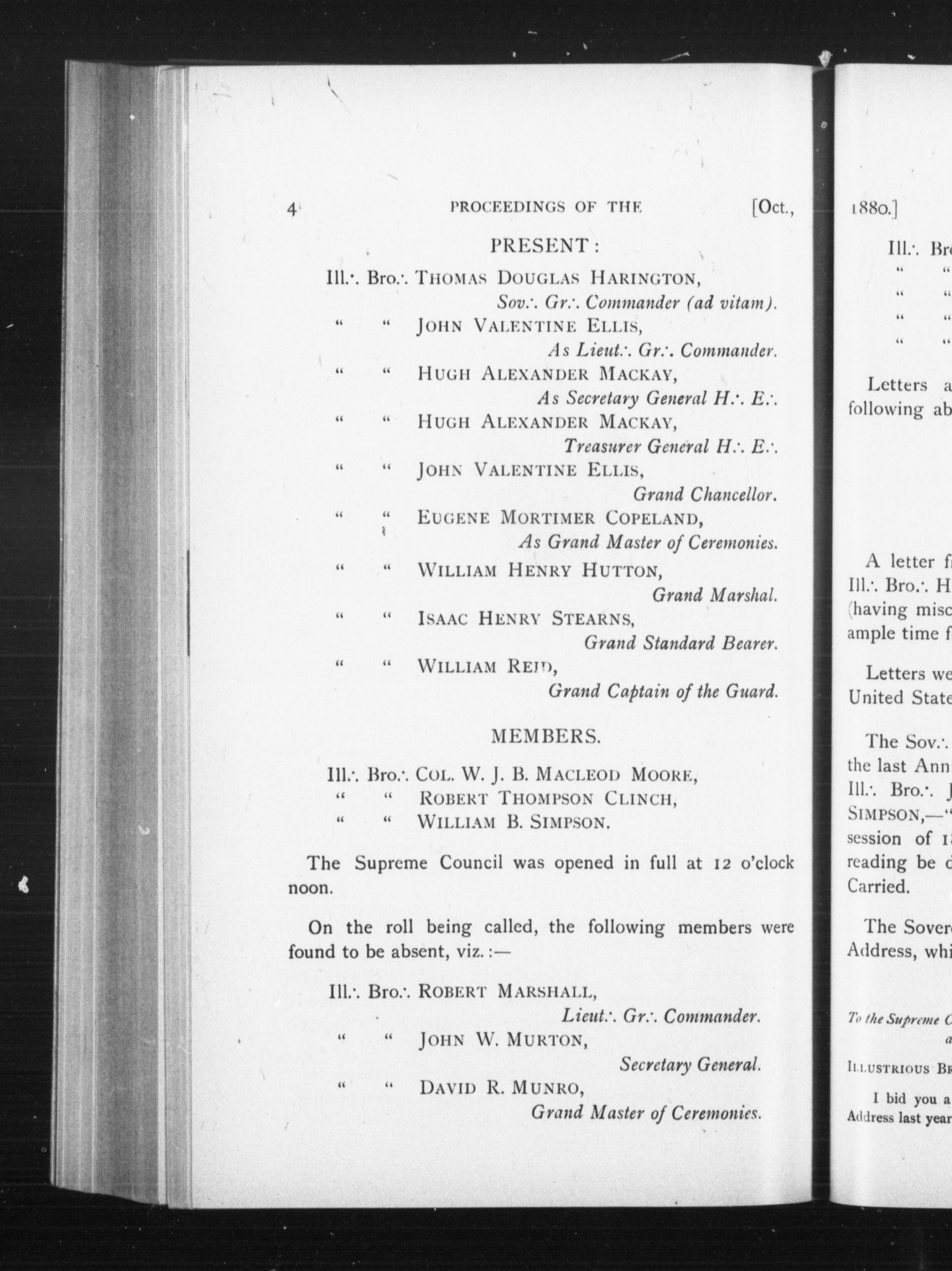 - Proceedings of the Supreme Council of Sovereign Grand Inspectors General of the Thirty-third and last degree, Ancient and Accepted Scottish Rite for the Dominion of Canada : 1880