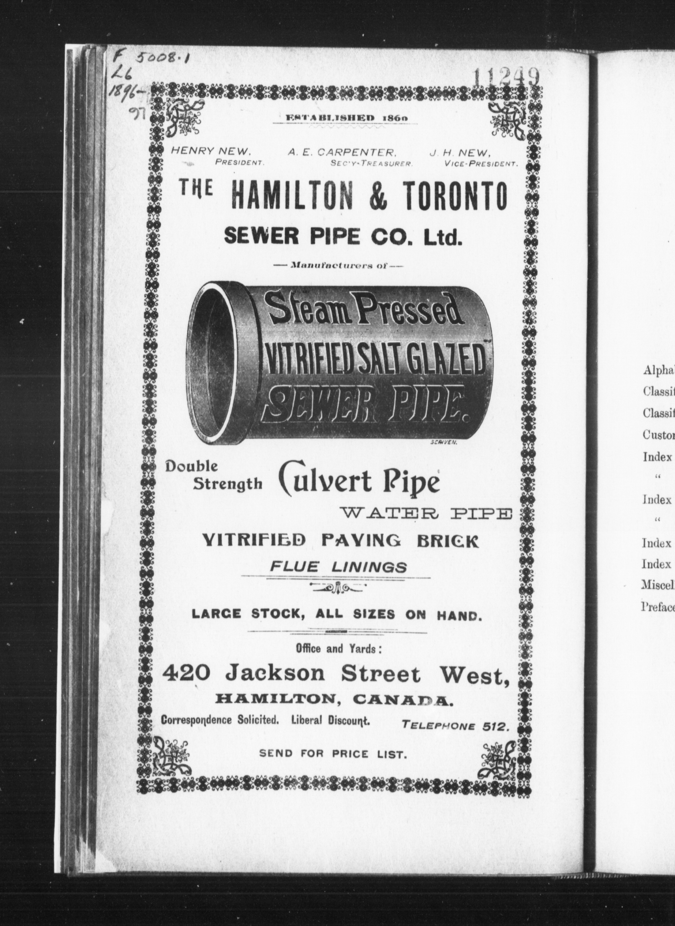 Lovell's business and professional directory of cities and towns of Montreal, Toronto, Quebec, Hamilton, Ottawa, St. John, N.B., Halifax, London, Winnipeg, Kingston, Victoria, Vancouver, St. Henri, Brantford, Peterboro', Charlottetown, Hull, Guelph, St. Thomas, Windsor, Sherbrooke, Belleville, Stratford, St. Catharines, St. Cunegonde, Chatham, Brockville, Moncton, Woodstock, Ont., Three Rivers, Galt, Owen Sound, Berlin, Levis, St. Hyacinthe, Cornwall, Sarnia, Sorel, New Westminster, Fredericton, Dartmouth, Yarmouth, Lindsay, Barrie, Valleyfield, Truro and Port Hope, and of all towns and banking villages in the Dominion of Canada, for 1896-97 : 1896/97
