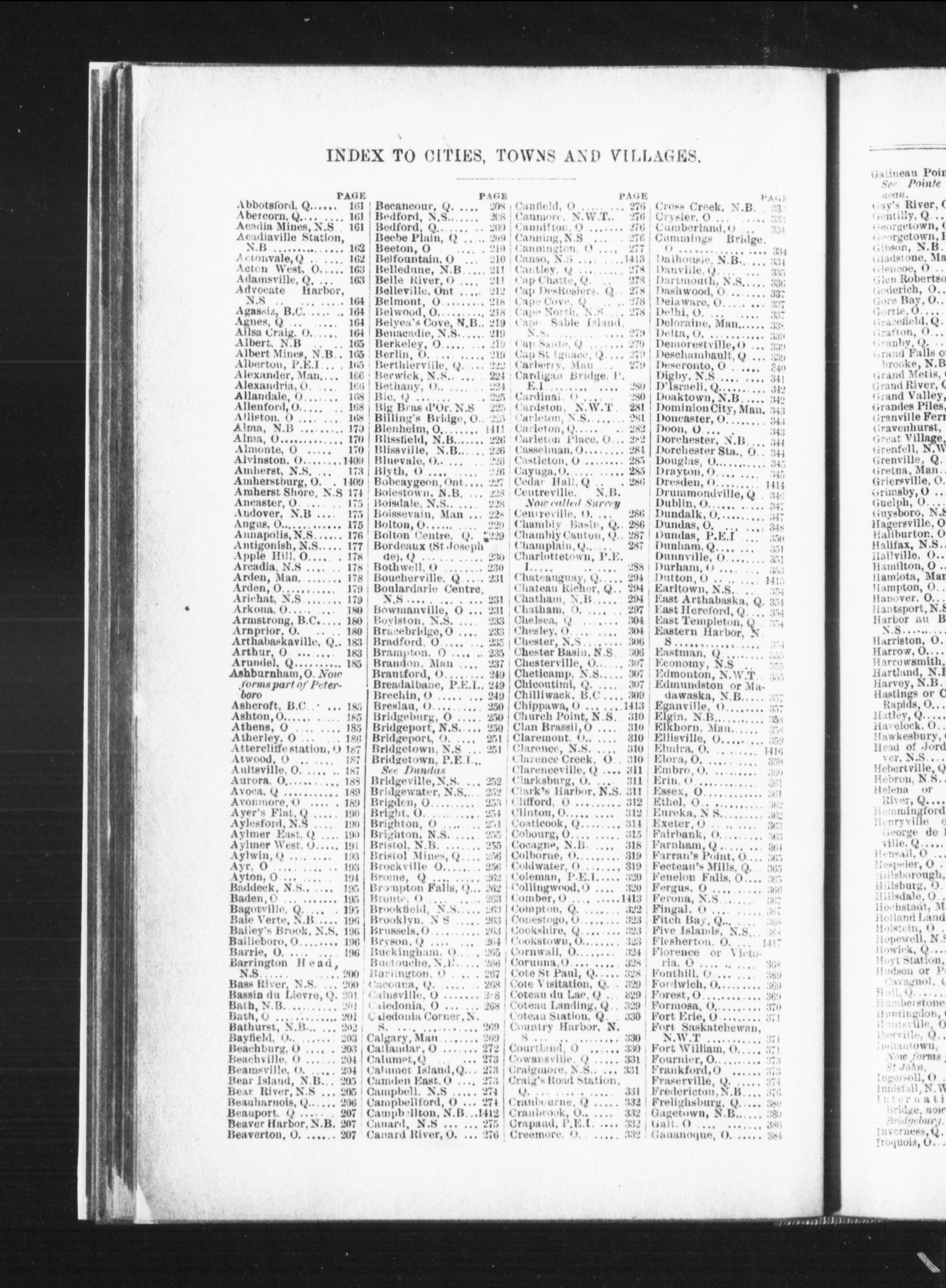 Lovell's business and professional directory of cities and towns of Montreal, Toronto, Quebec, Hamilton, Ottawa, St. John, N.B., Halifax, London, Winnipeg, Kingston, Victoria, Vancouver, St. Henri, Brantford, Peterboro', Charlottetown, Hull, Guelph, St. Thomas, Windsor, Sherbrooke, Belleville, Stratford, St. Catharines, St. Cunegonde, Chatham, Brockville, Moncton, Woodstock, Ont., Three Rivers, Galt, Owen Sound, Berlin, Levis, St. Hyacinthe, Cornwall, Sarnia, Sorel, New Westminster, Fredericton, Dartmouth, Yarmouth, Lindsay, Barrie, Valleyfield, Truro and Port Hope, and of all towns and banking villages in the Dominion of Canada, for 1896-97 : 1896/97
