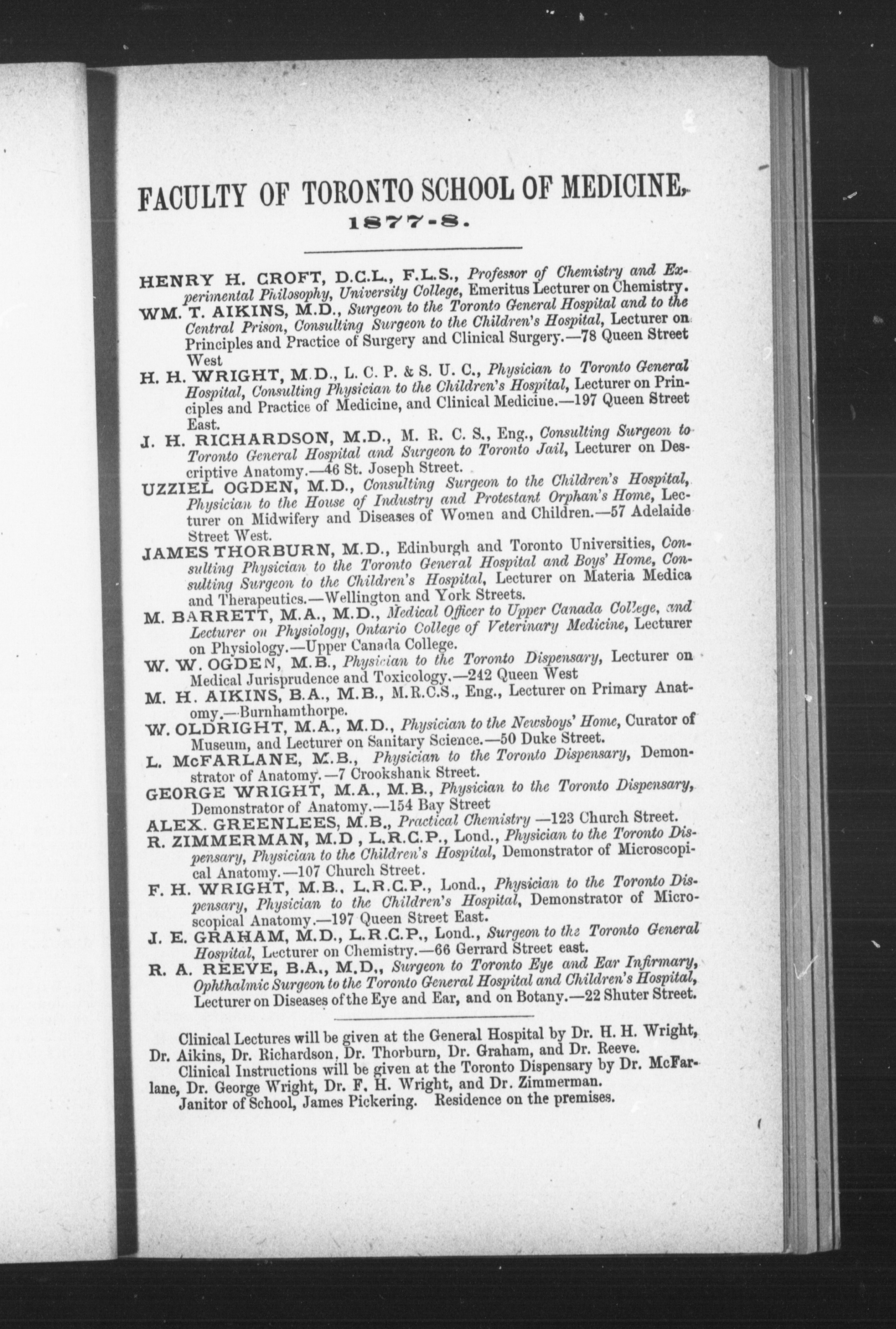 - [Toronto] : [Toronto School of Medicine], [1877]