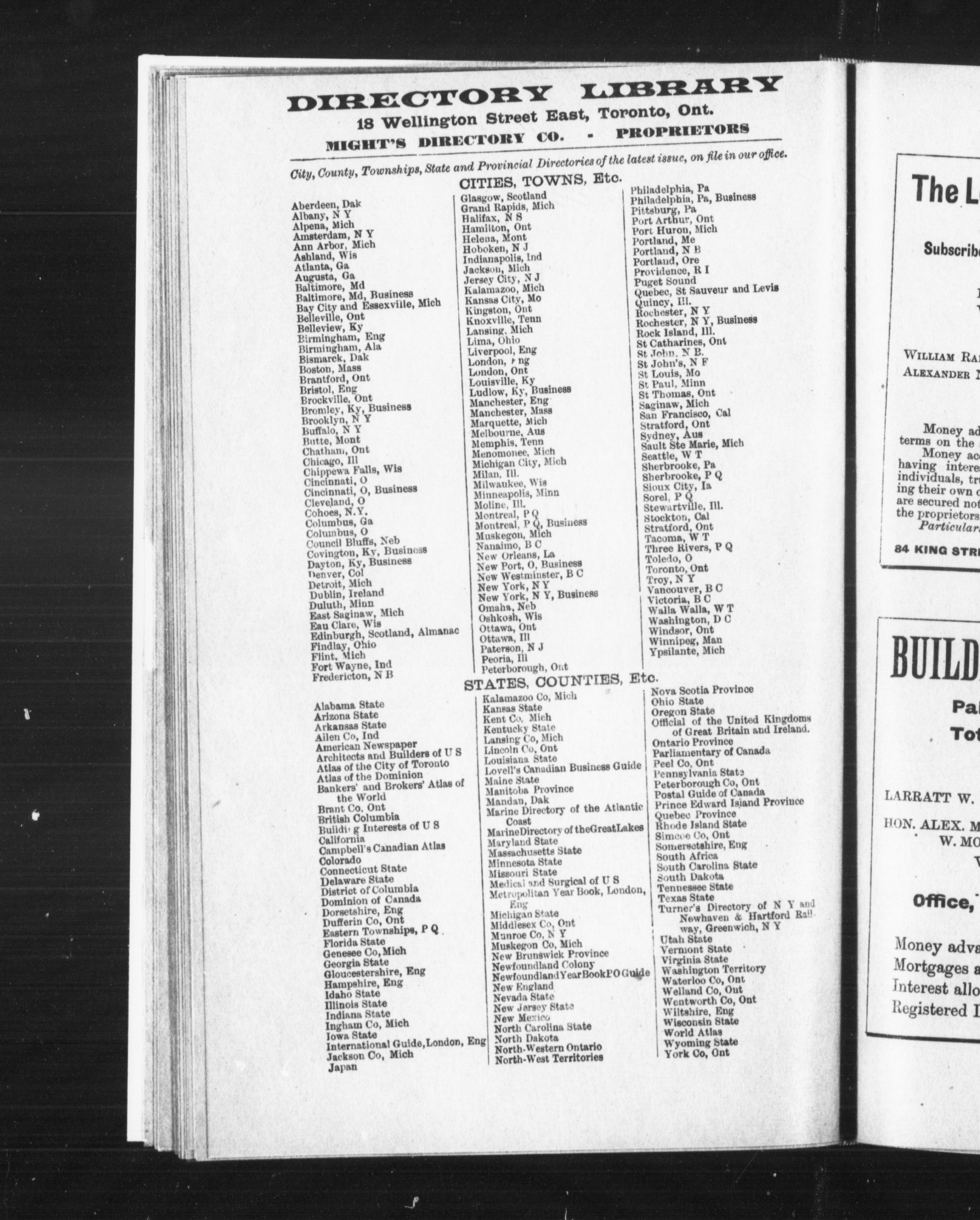 Toronto, Ont. : Might's Directory Co., [1892]; 1784 images avec recherche en texte intégral