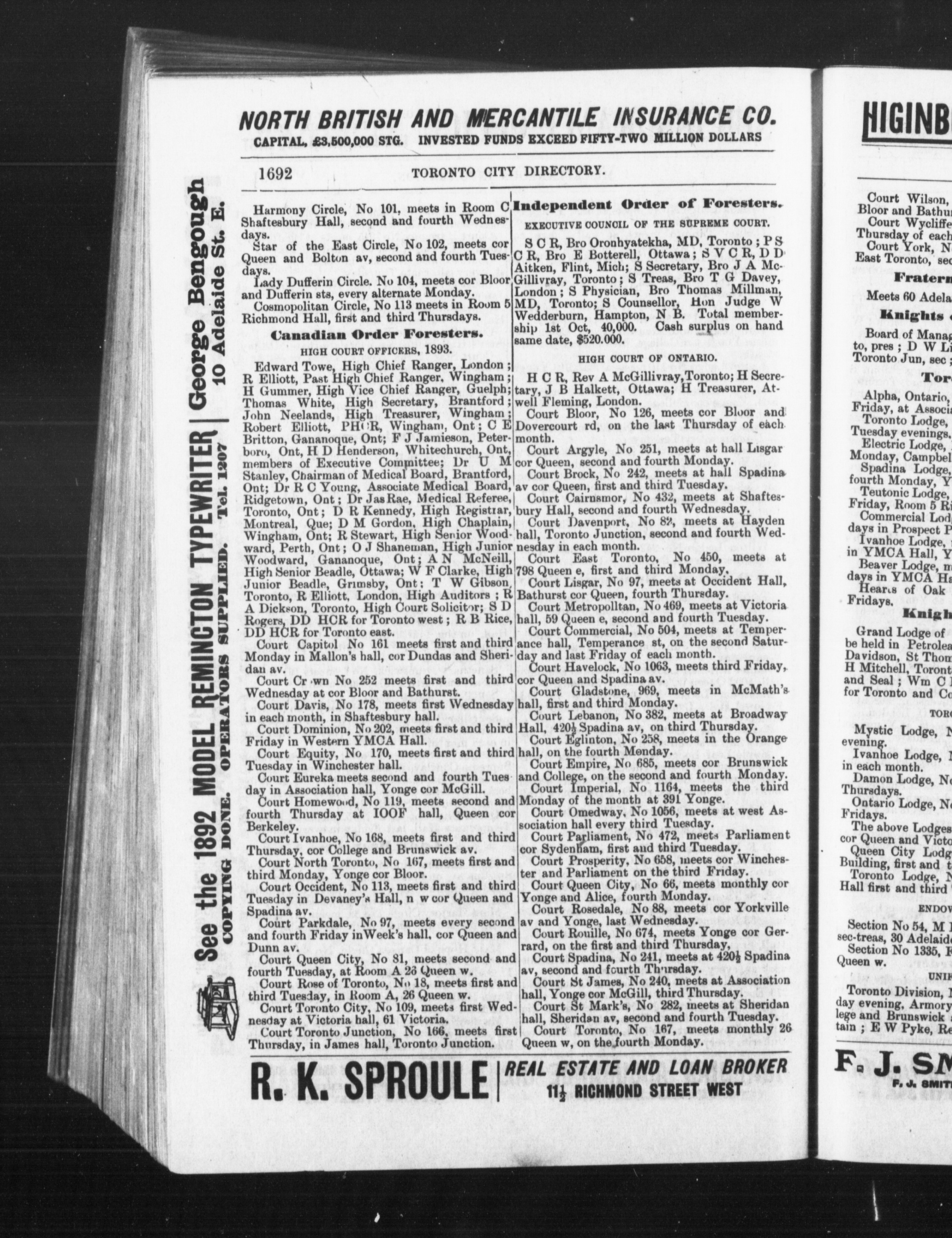 Toronto, Ont. : Might's Directory Company, [1893]; 1664 images avec recherche en texte intégral
