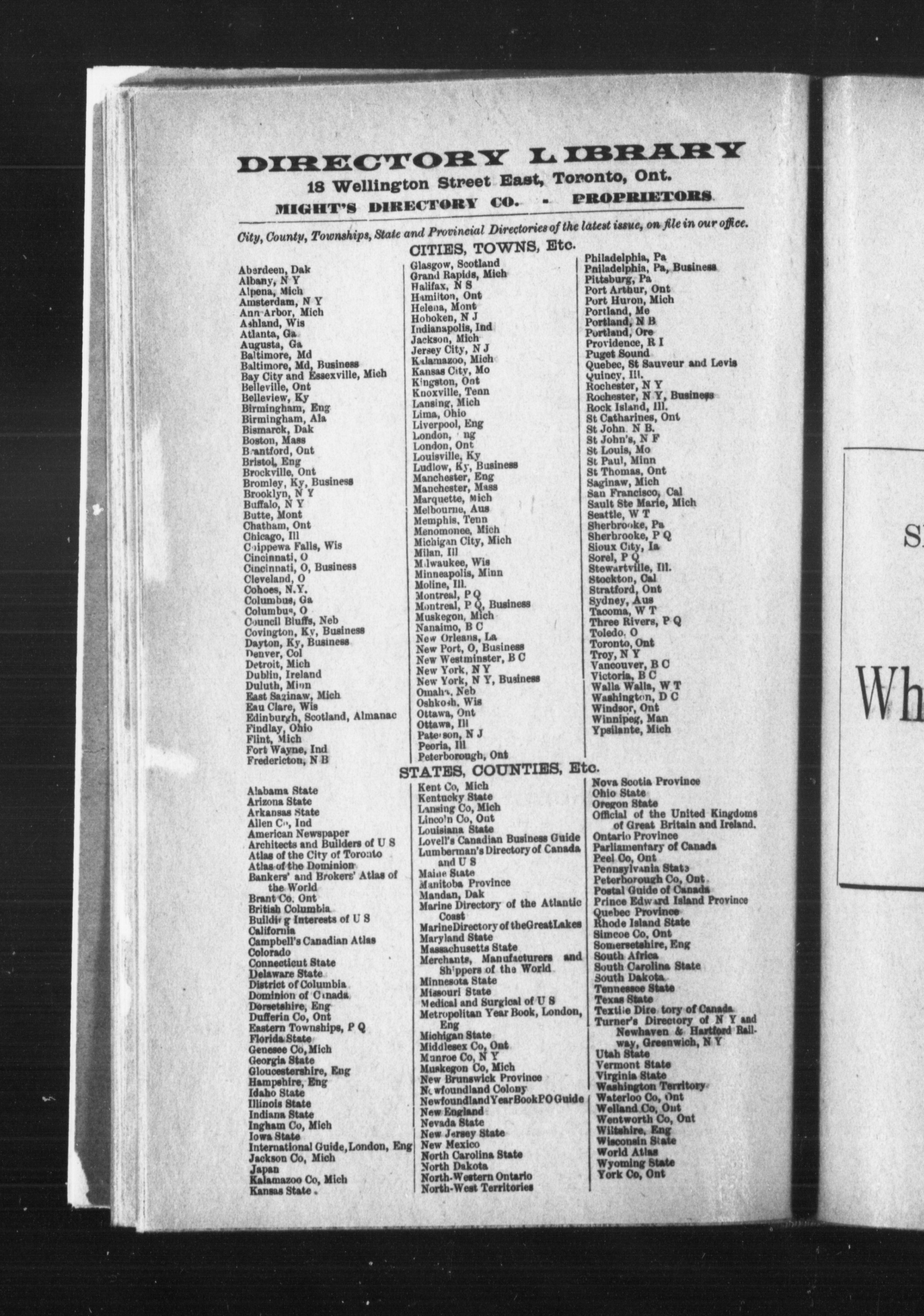 Toronto, Ont. : Might's Directory Company, [1893]; 1664 images avec recherche en texte intégral
