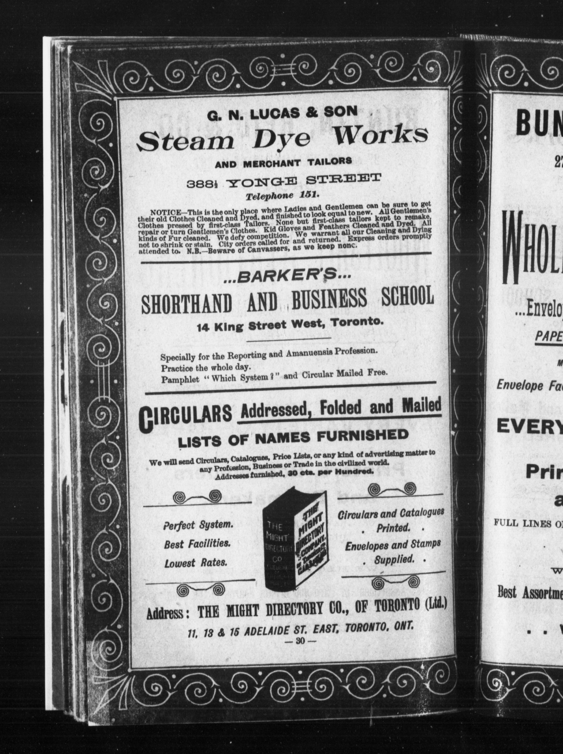 Toronto, Ont. : The Might Directory Company, [1895]; 1744 images with full-text search