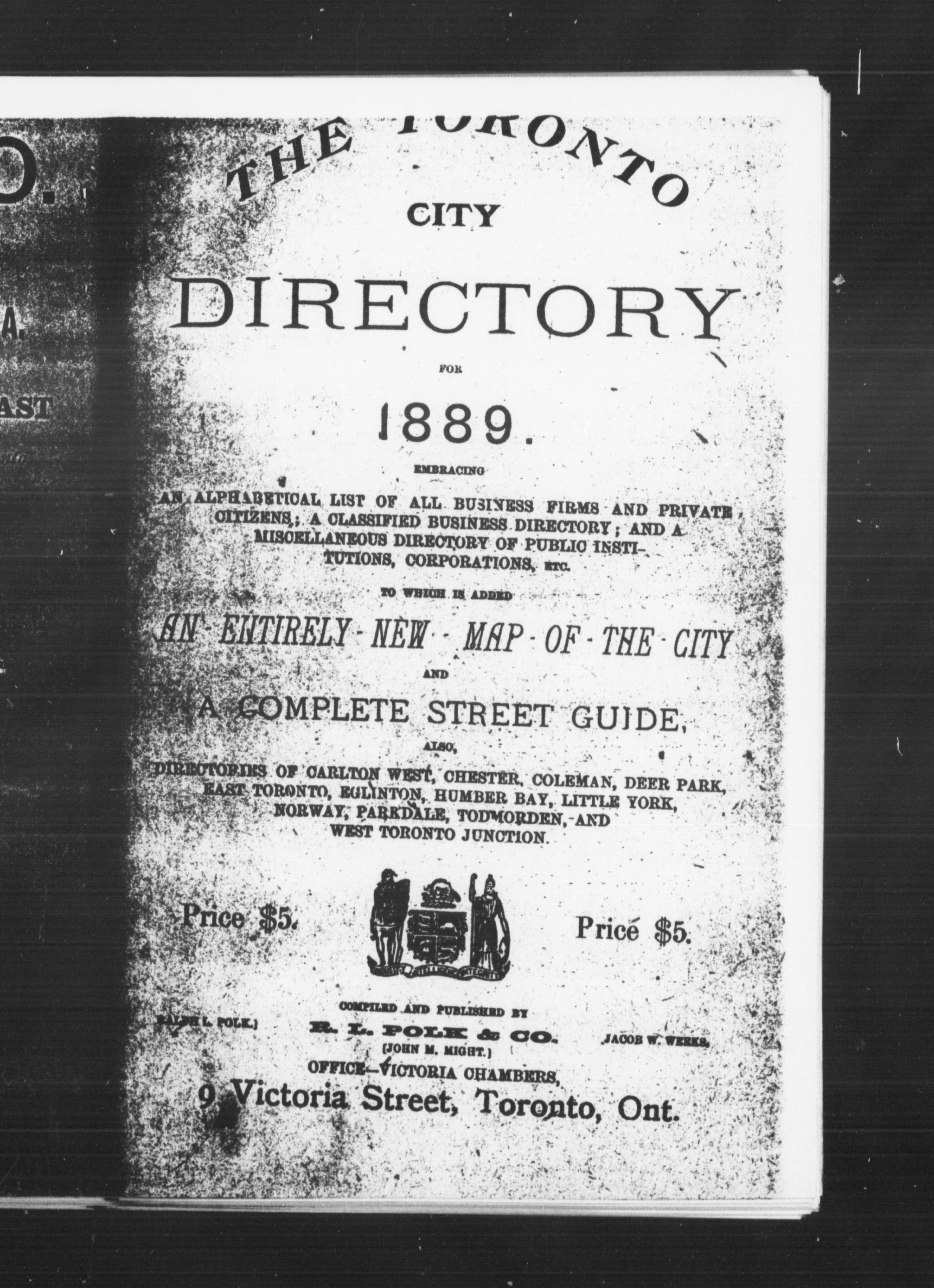 Aide Toronto : R.L. Polk & Co., [1889]; 1488 images avec recherche en texte intégral