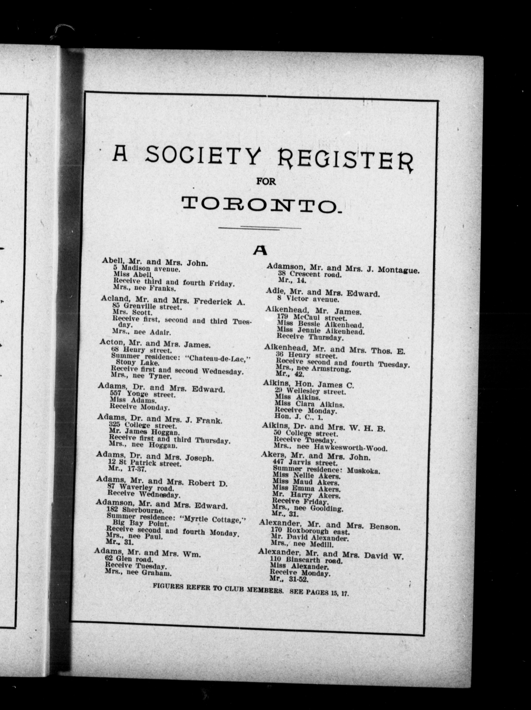 - The Toronto, Hamilton and London society blue book : First (1900)
