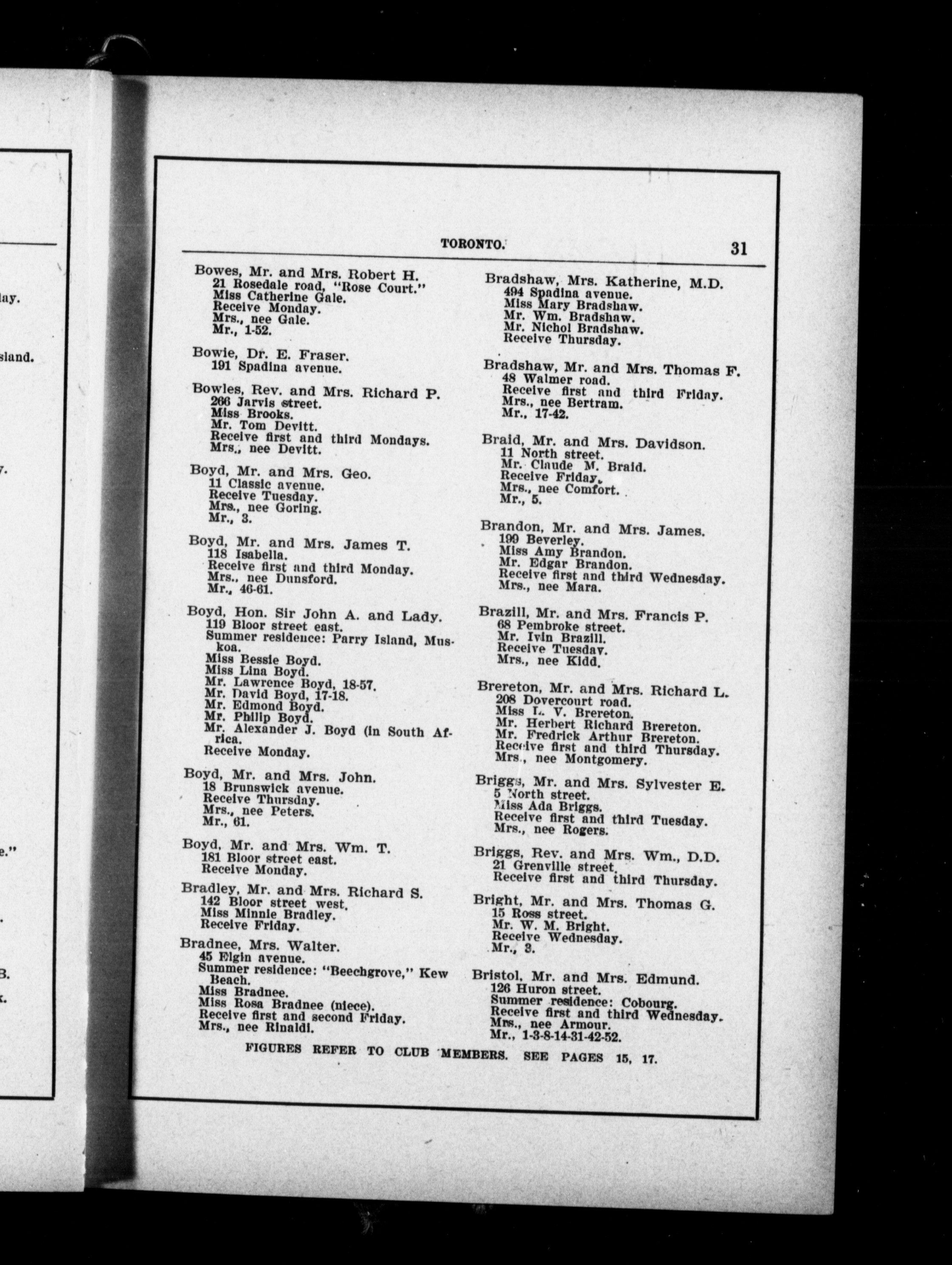 - The Toronto, Hamilton and London society blue book : First (1900)