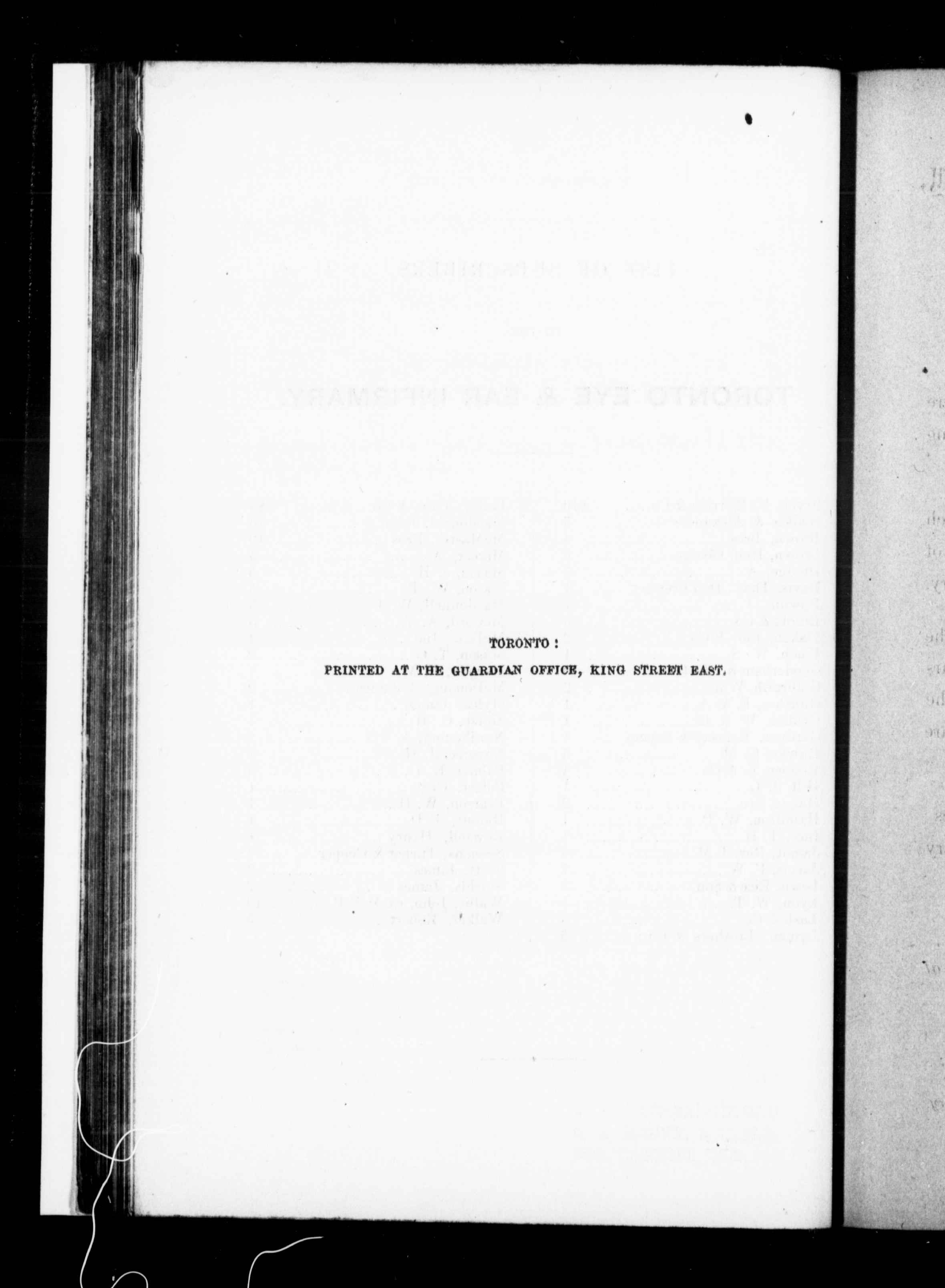 - [Toronto] : [Toronto Eye and Ear Infirmary], [1871]