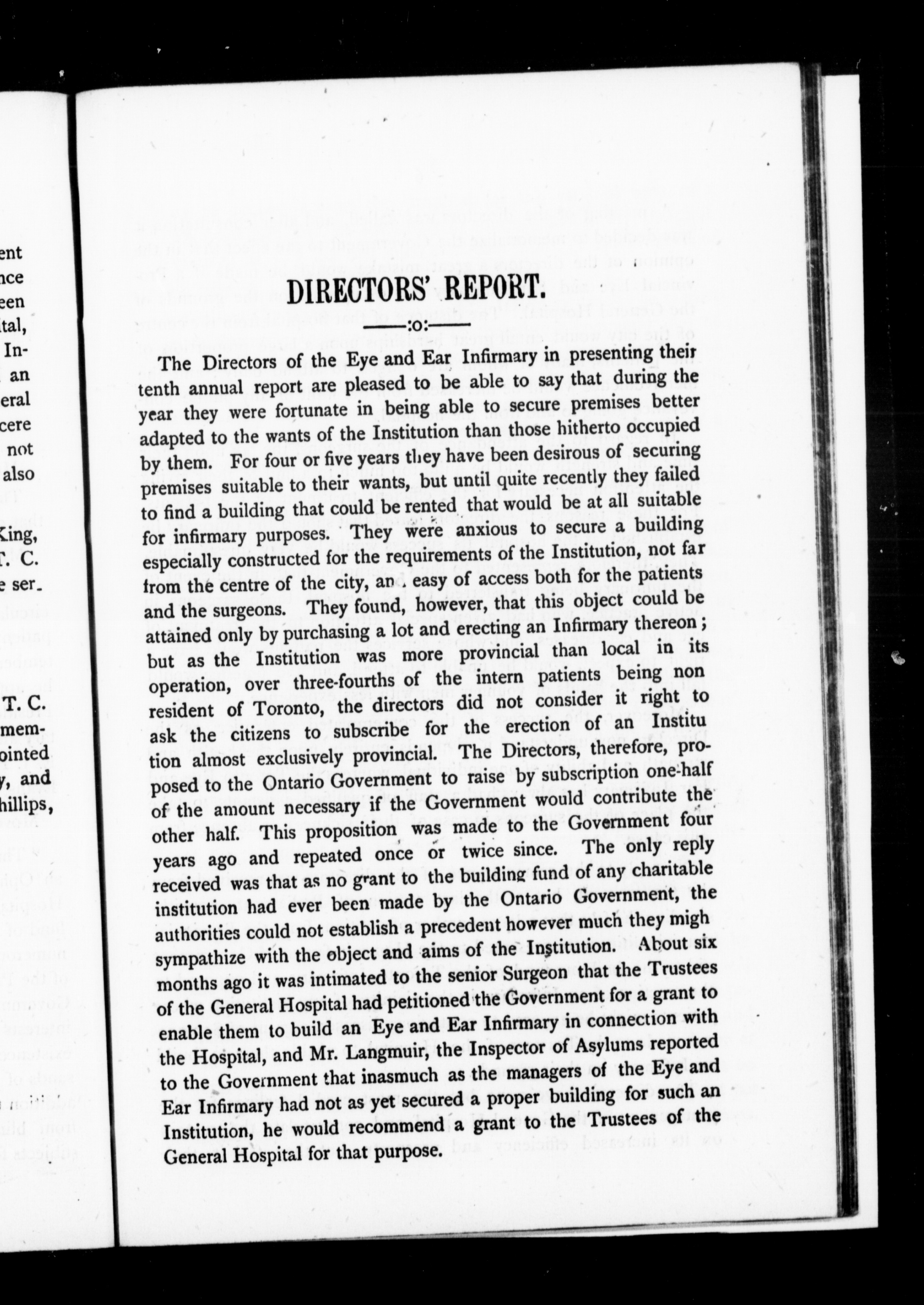 Annual report of the Toronto Eye and Ear Infirmary, with the constitution and list of subscribers : Tenth annual report of the Toronto Eye and Ear Infirmary, with the constitution and list of subscribers, 108 Shuter Street, 1878 : Tenth (1878)