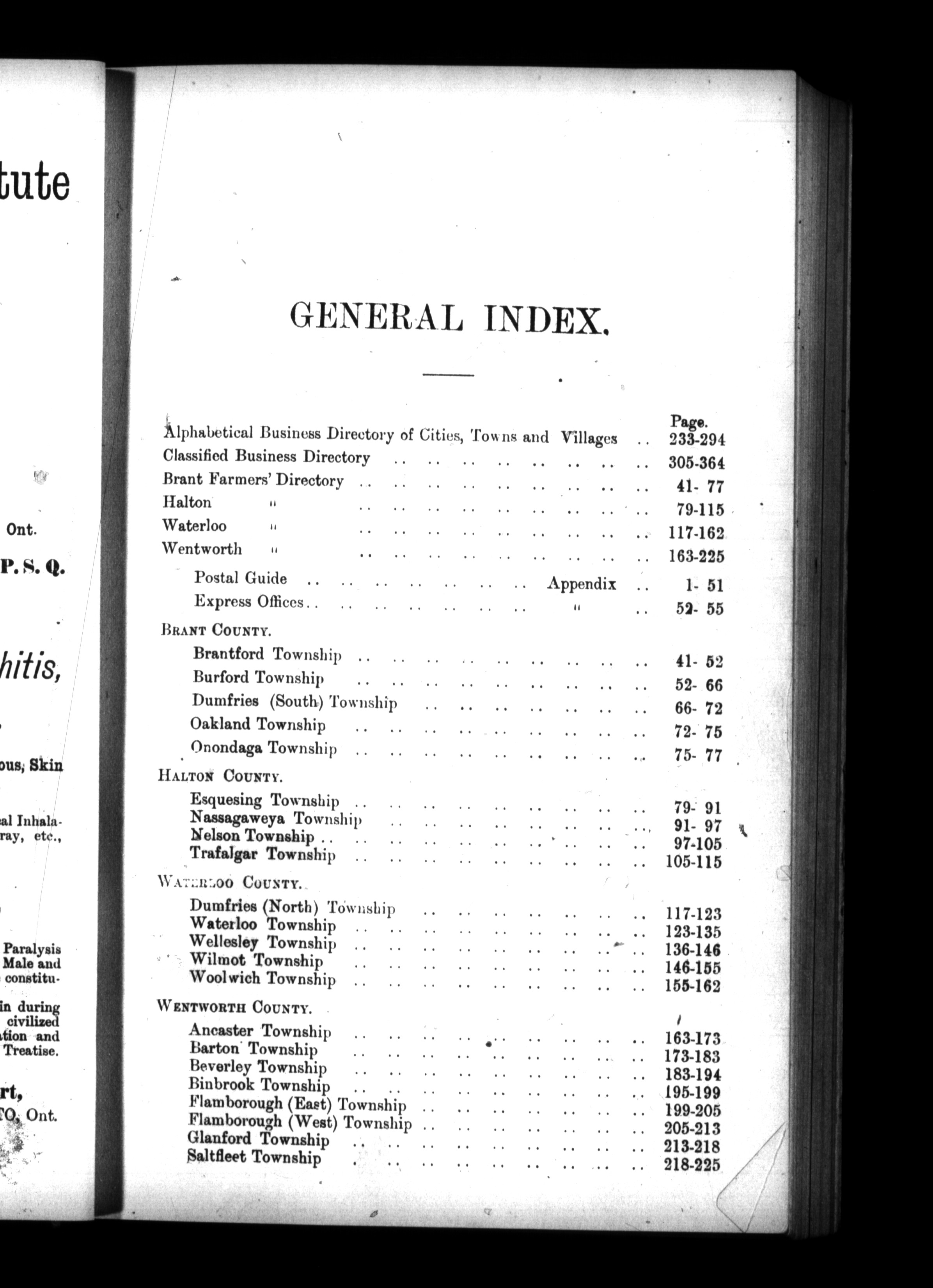 The Union Publishing Co.'s farmers' and business directory, for the counties of Brant, Halton, Waterloo and Wentworth : Vol. I (1884/5)