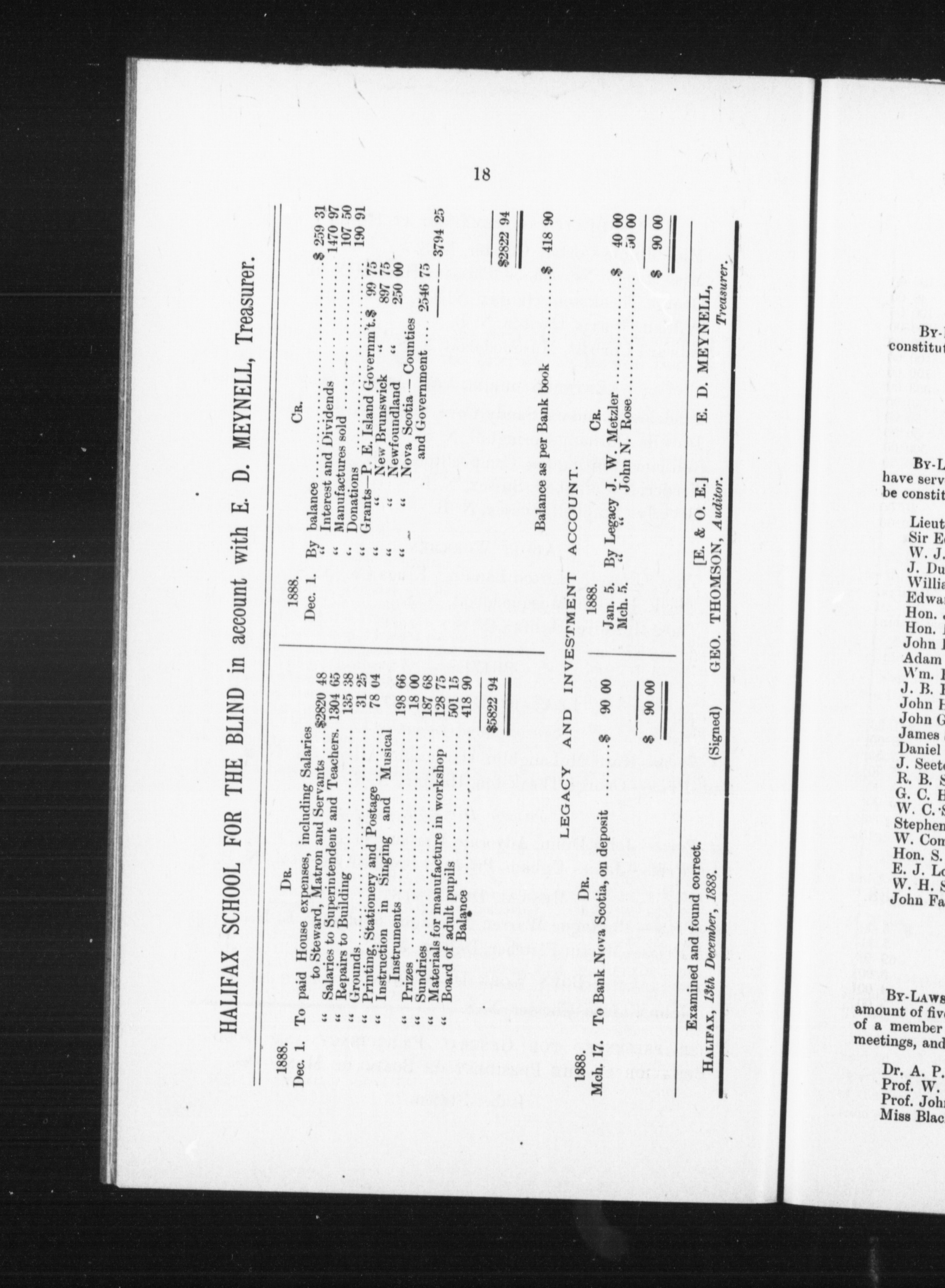 Report of the Board of Managers of the Halifax School for the Blind, together with the act of incorporation, and constitution and by-laws : Eighteenth report of the Board of Managers of the Halifax School for the Blind, together with the act of incorporation, and constitution and by-laws : Eighteenth (1888)