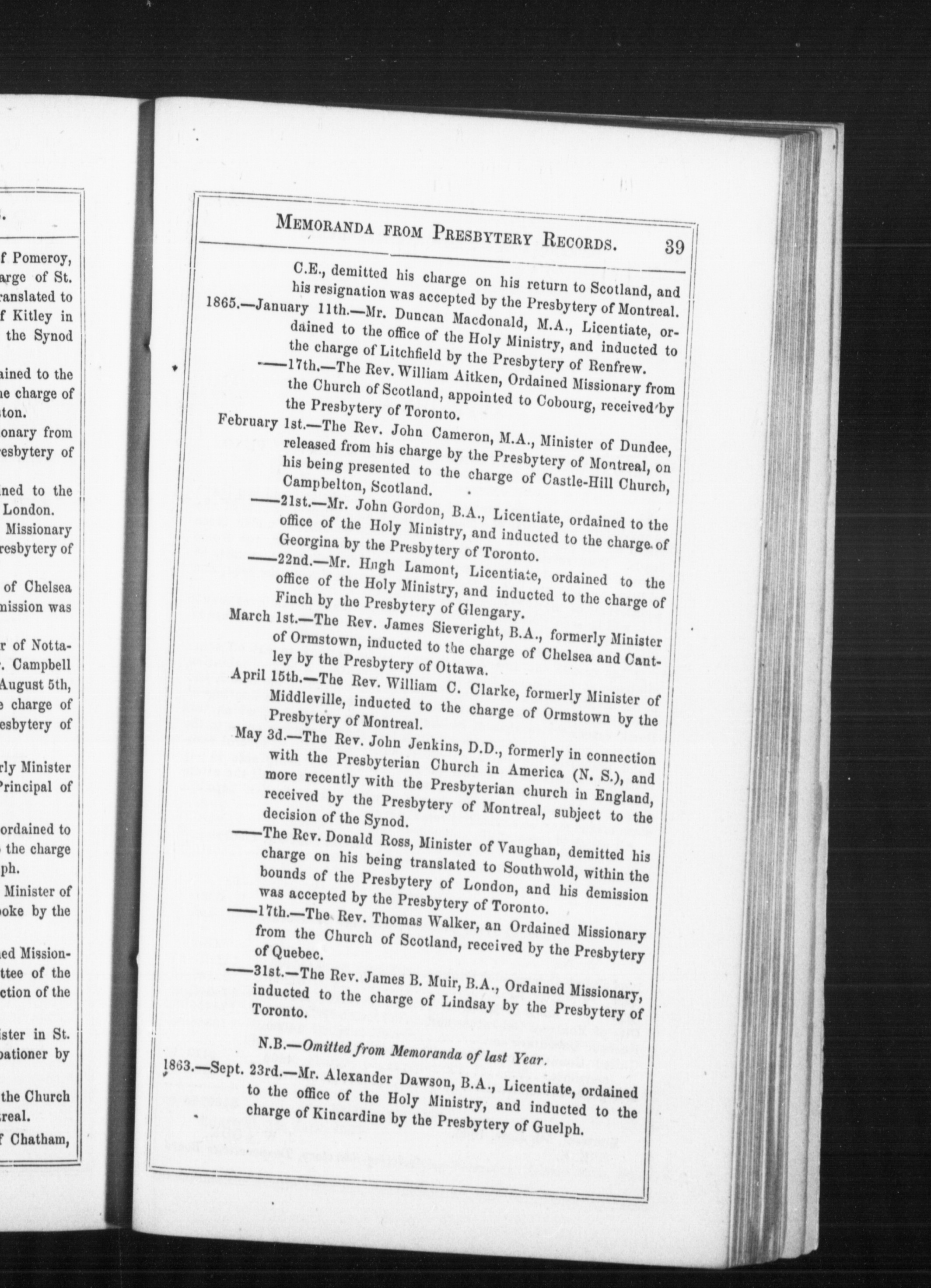 [Toronto?] : [Synod of the Presbyterian Church of Canada, in Connection with the Church of Scotland], 1865; 88 images avec recherche en texte intégral